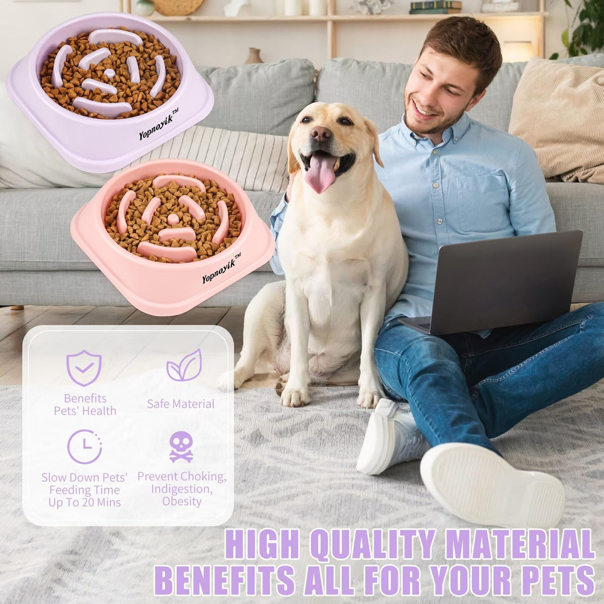 2 Pack Slow Feeder Dog Bowls For Healthy Eating, Non-Slip And Anti-Choking Design, Reduces Bloating & Overeating For Large Dogs,