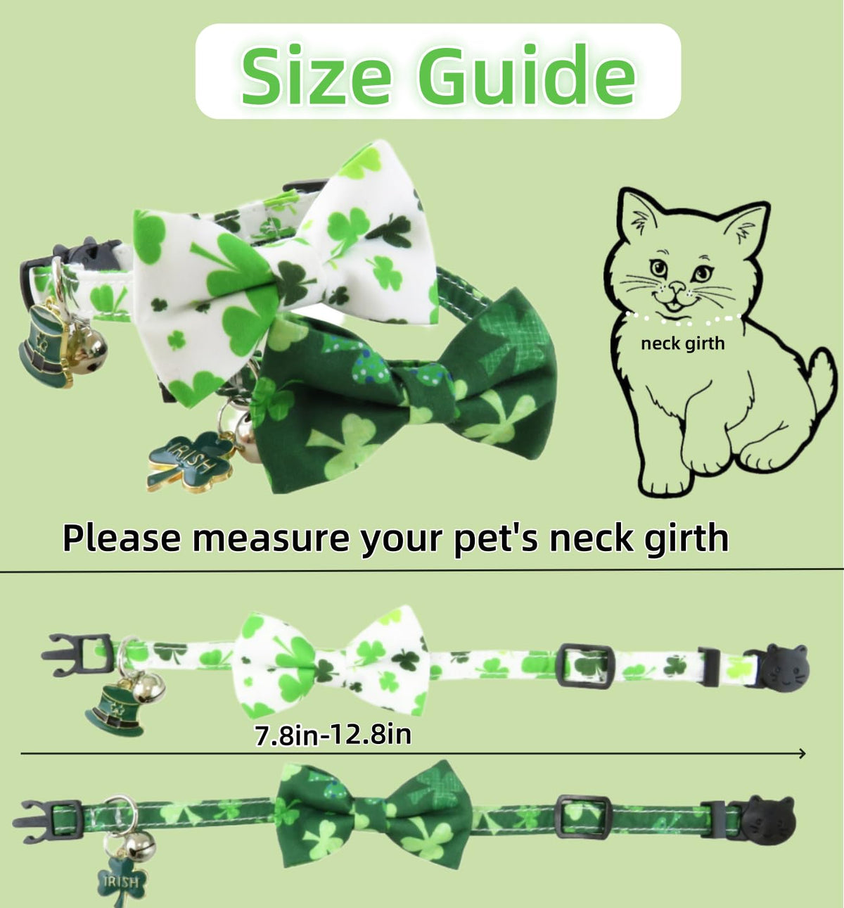 ?St. Patrick's Day Cat Gift?: 2 pcs Shamrock green cat collar with bowtie. Ideal for indoor/outdoor use adding festive charm to your friend's look.