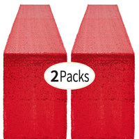 2 Packs 12 X 72 Inches Red Sequin Table Runner, Glitter Runner For Birthday Party Supplies Decorations Wedding Bachelorette Holi