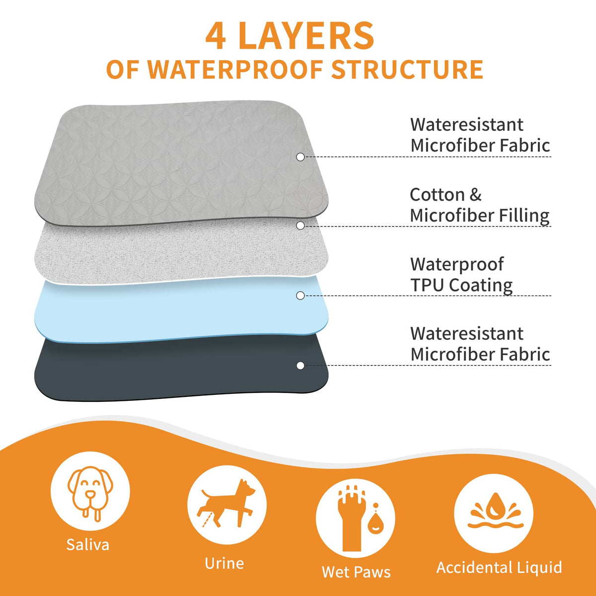 1. 100% WATERPROOF: Pet blanket has strict control towards water resistance. Both sides of the surface fabric are waterproof and the attached TPU membrane can ensure the liquid will not penetrate the blanket. 2. The soft waterproof pet blanket can protect your furniture from wear and dirt. For example, put the pet blanket on a bed or a sofa so that you can get close to your pet at any time in a clean and comfortable environment. 3. Convenient Replacement: Two-pack waterproof dog blankets for bed and couch rotation; always have a clean blanket available. 4. Four-Layer Protection: TPU waterproof coating on the outer layer and cotton inner layer prevents accidents from reaching furniture. 5. Effortless Pet Hair Removal: Keeps pet hair and dirt off furniture, making cleaning easier and maintaining a clean home. 6. Easy Cleaning: Machine washable dog blanket for hassle-free maintenance. 7. Reversible Colors: Stylish light grey and dark grey sides match any home decor for an elegant look. 8. 2-Year Warranty: We prioritize product quality and customer satisfaction, offering a 2-year warranty for peace of mind.