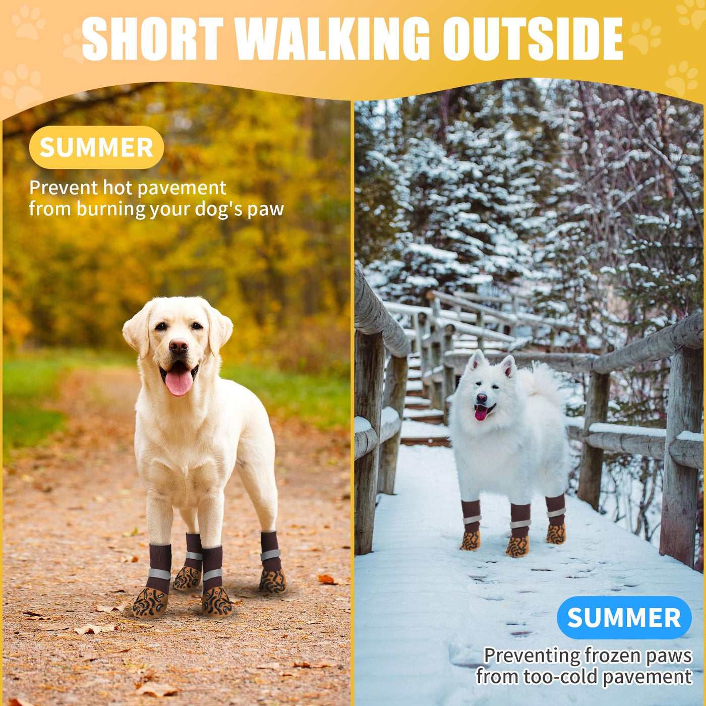 ? Why Choose Us? ??? Excellent Quality:Keggaen'S Products Are Not Only High-Quality, But Also Designed And Innovated With The Concept Of 'Customer-Centered' To Create Value For Customers. We Understand Our Customers, Benchmark With Them, Get Close To Them, And Match Them With Our Products So That We Can Continue To Introduce Products That Meet The Needs Of Our Customers.If You Encounter Any Problems When You Select And Purchase Our Products, Please Feel Free To Contact Us, We Will Be Honored To Help You Solve Them!?? The Features Of The Dog Paw Covers:1. Silicone Pattern On All Sides Even When Twisted.2. High Elastic Dog Grip Socks Cuff Easy To Wear.3. Adjustable Straps To Ensure Comfort.4. The Dog Snow Boots Can Protect Your Dog'S Paws Safe From Hot/Cold Pavement, Ensuring Their Safety And Comfort.?? The Specifications Of The Dog Boots For Large Dogs:1. Color: Brown2. Material: Nylon3. Function: Pet Anti-Slip Socks4. Product Size: 6.3 2.6 Inches/16 6.5 Cm5. Packing List: 4Pcs Anti-Slip Socks?? Notes:1. Please Carefully Measure Your Pet'S Paws Before Ordering.2. If Between 2 Sizes, Choose The Larger Size.