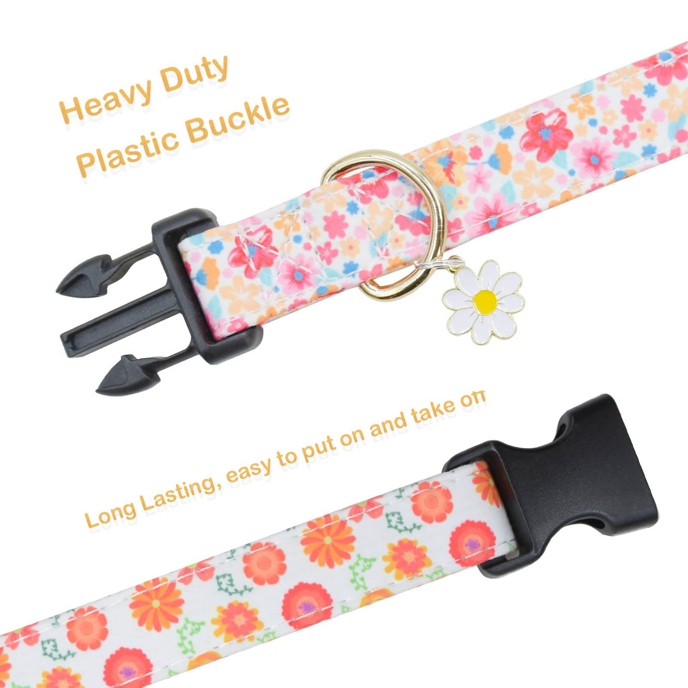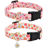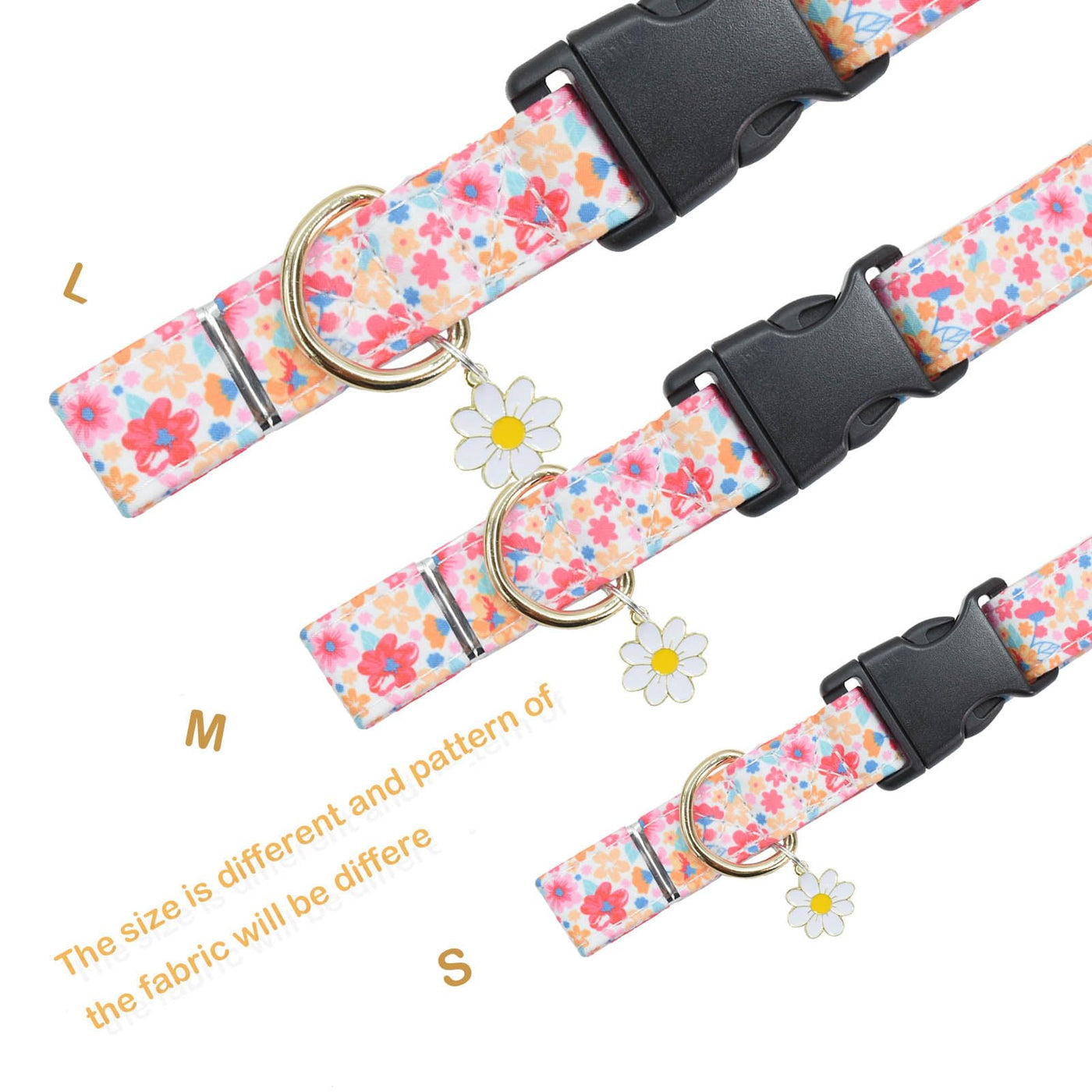 2 Pcs Cotton Dog Collar Soft Cute Flower -3 Sizes Soft Nylon Puppy Collar Adjustable For Girl Female Small Medium Large Dogs (Fl