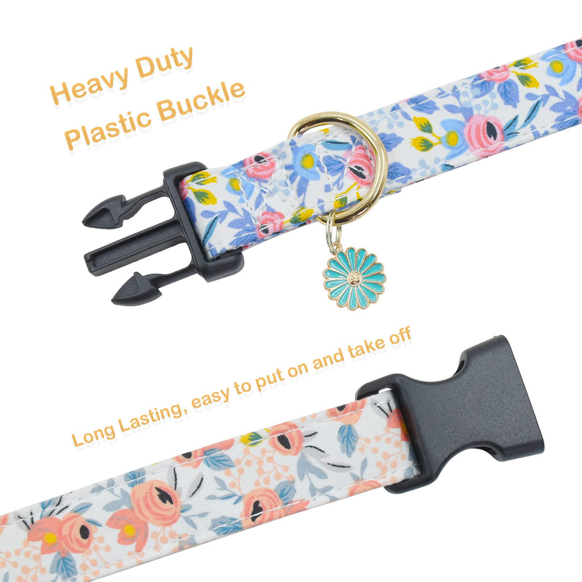 2 Pcs Cotton Dog Collar Soft Cute Flower -3 Sizes Soft Nylon Puppy Collar Adjustable For Girl Female Small Medium Large Dogs (M(