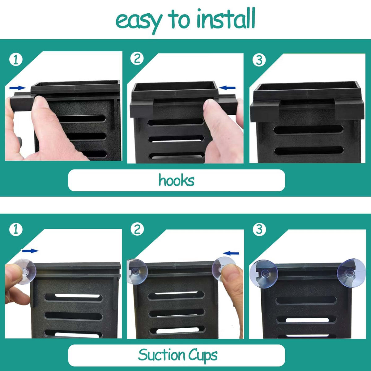 I am an aquarium enthusiast. I tried a variety of ways to make my aquarium both beautiful and good ecology, by chance I found this aquatic plant stand, it is personal, creative, unique design, with aquatic plants can surprisingly create an unexpected effect. Prefect Design Surrounded by permeable holes, allow to keep the water always be fresh, make the plants receive sunshine and light conveniently, promote for bigger, healthier roots and and form a good water internal circulation of aquarium. More Stable This aquatic plant holder using hook design, It has 3 different size of hook, can steady hang on many kinds of aquariums (the thickness less than 0.8in/2cm), much nicer and steadier looking than other types of aquarium aquatic glass tank. . Best Fish Tank Decoration Hydroponic plant propagator can beautify and purify your fish tank, it will create fresh green atmosphere and make you feel relaxed, Make your home more cozy and your office more beautiful with this fish bowl plant holder, you can have your small garden, and it will do not take much room. Product Features Product Name: Aquatic Plants Holder Product Size: 3.1x2.1x5.0 inches Product Weight: 0.17Ib Product Color: Black Package Weight: 0.46Ib(214g) Package Size:7.08x5.51x2.28 inches Package Including: 2 PCS Water Plant Baskets 6 Sets of Hooks