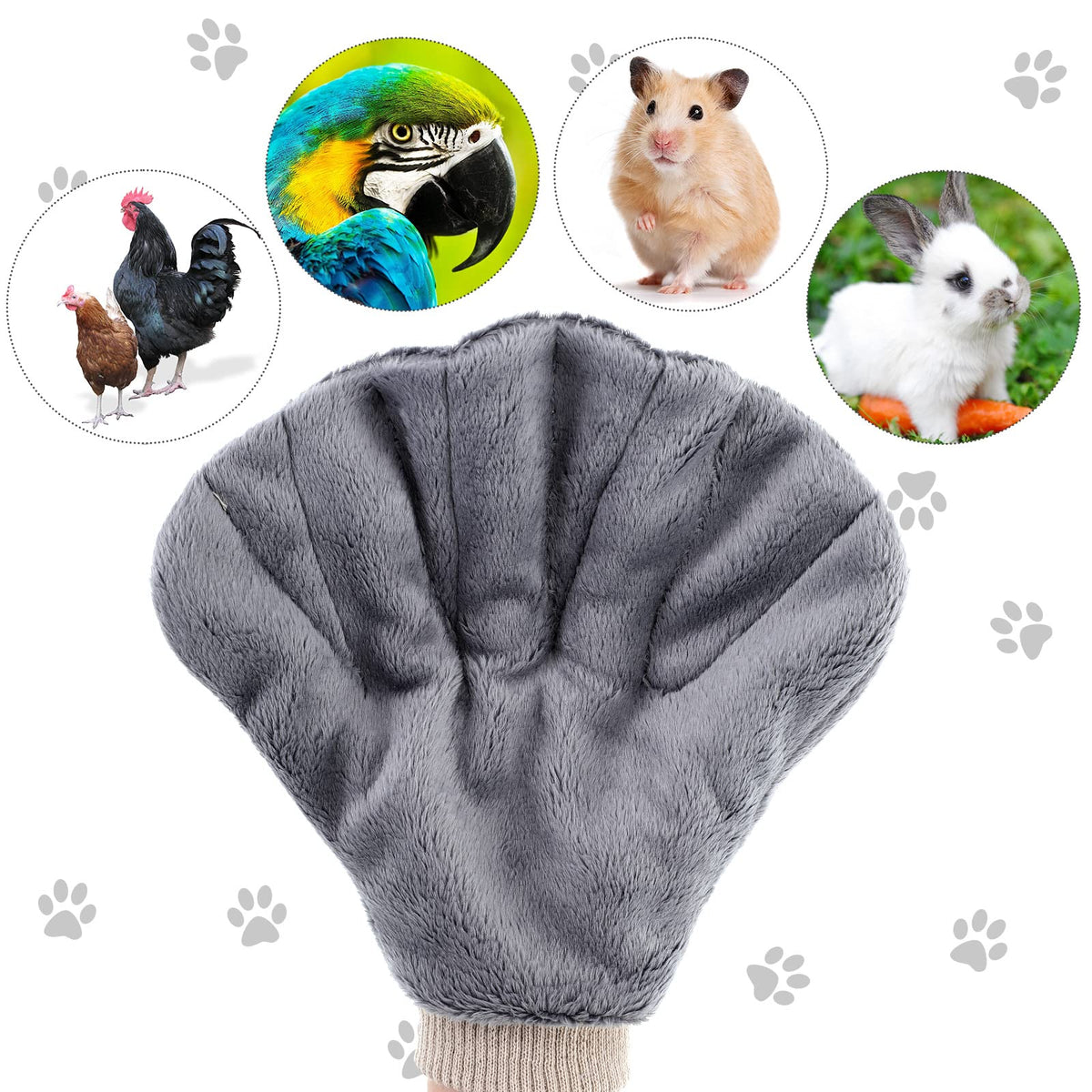Q: What material is the calming glove made of?A: The calming glove is made from soft and thickened coral velvet, ensuring comfort and reliability for both you and your small pets.