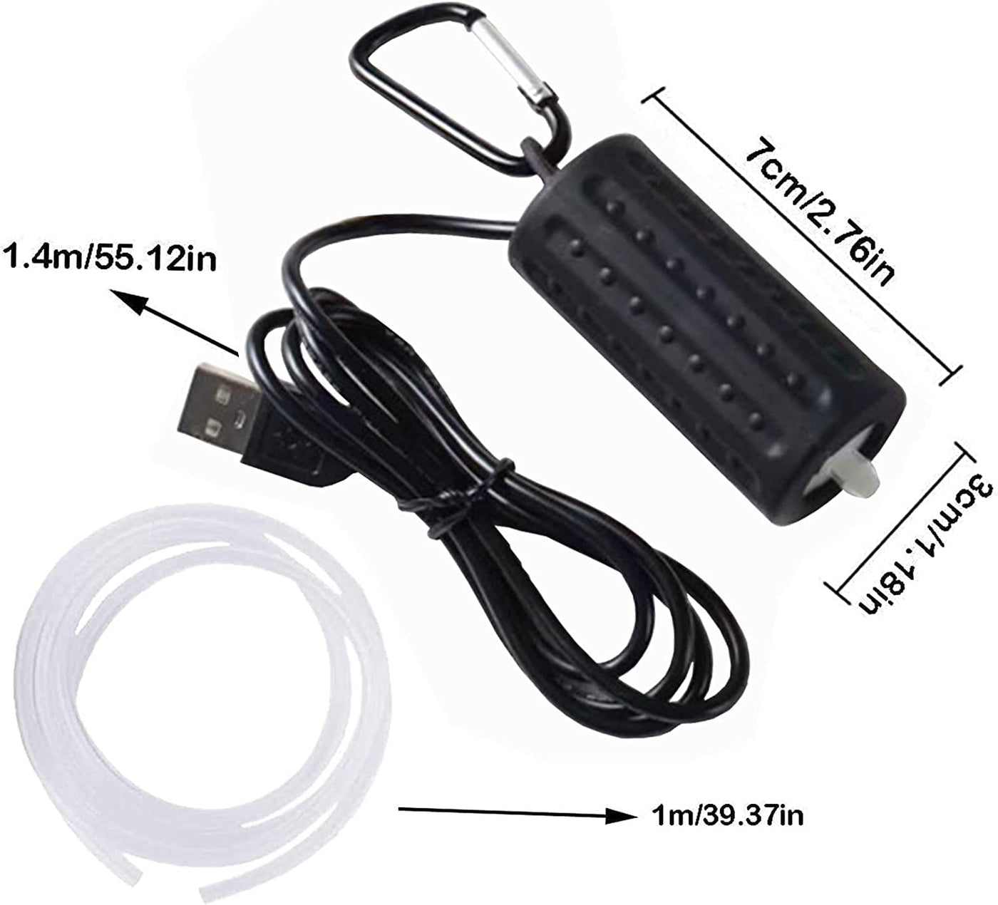 2 Pcs Usb Fish Oxygen Air Pump Aquarium Ultra Quiet Oxygen Pump For Fish Tank With Hanging Buckle (Black - 2Pcs)