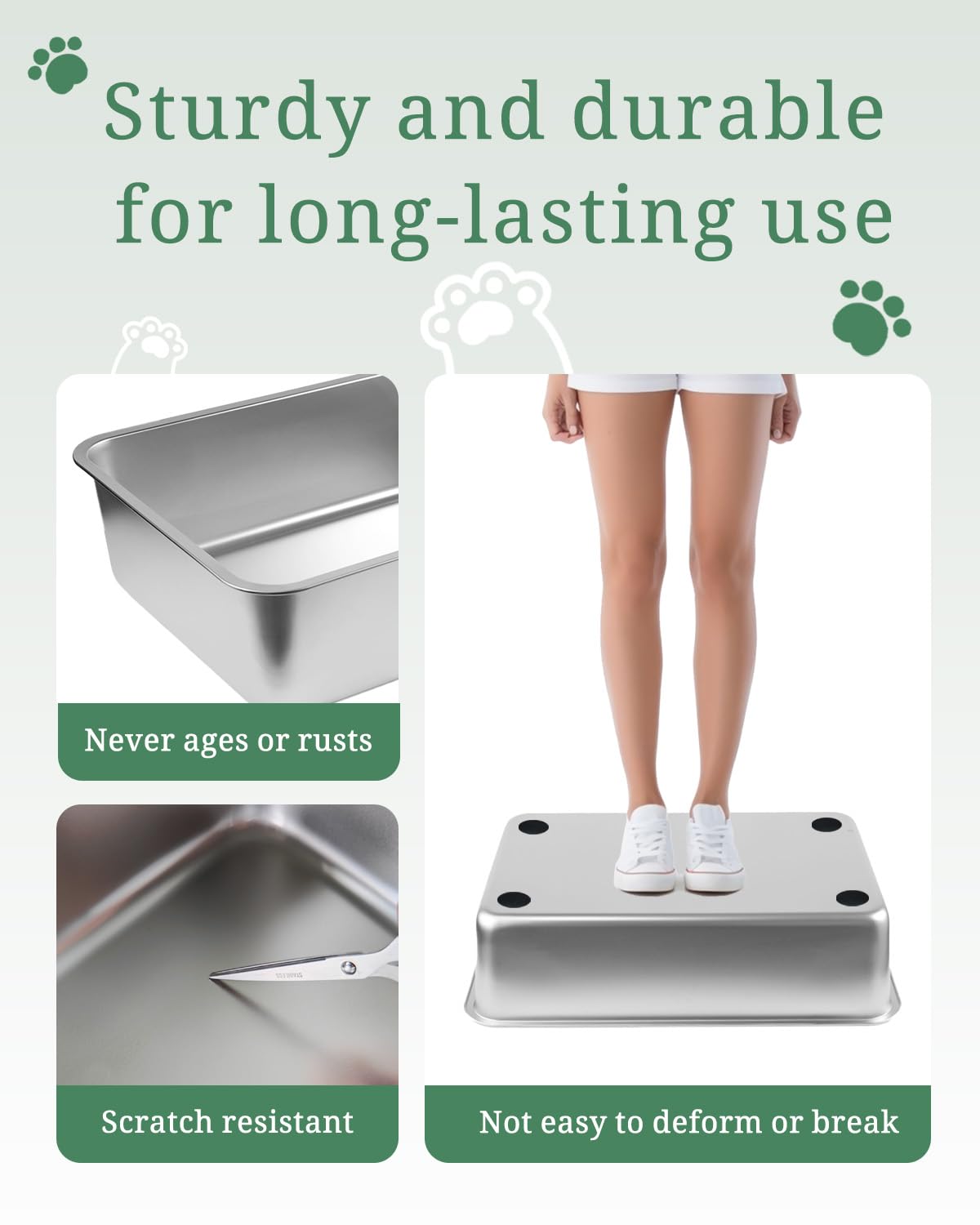 This Medium-Sized Stainless Steel Cat Litter Box Is The Perfect Choice For Your Beloved Cat. It Is Sturdy And Durable, With A Normal Service Life That Can Exceed Several Decades, And The Actual Cost Of Use Is Extremely Low. With Dimensions Of 17.5 Inches 13.6 Inches 5.8 Inches, It Is Of A Moderate Size, Meeting The Needs Of Medium-Sized Cats Without Taking Up Too Much Indoor Space. The Depth Of 6 Inches Is Designed To Effectively Prevent Cat Litter From Leaking Out While Ensuring That Cats Can Easily Enter And Exit. All Edges And Corners Are Designed With Rounded Arcs. Considering Safety, It Will Not Cause Any Harm To Pets. Its Surface Is Very Hard And Smooth, Not Easy To Scratch And Not Prone To Sticking To Waste, Making It Very Easy To Clean. Made Of Stainless Steel, This Cat Litter Box Does Not Release Any Odor On Its Own, Nor Will It Retain Odors Due To Urine Infiltration, Helping To Keep Your Home Environment Fresh.