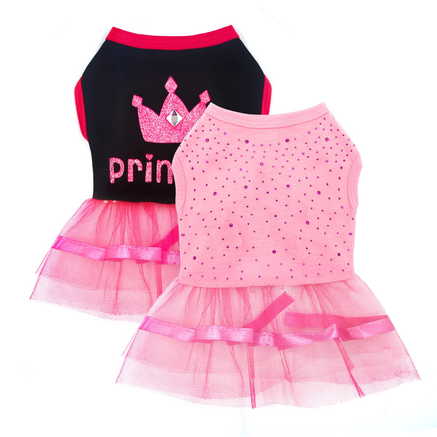 2 Pieces Dog Dress With Bling Rhinestones Cute Princess Puppy Clothes For Small Dog Girls Female Doggie Pet Dress Tutu Outfit Fo