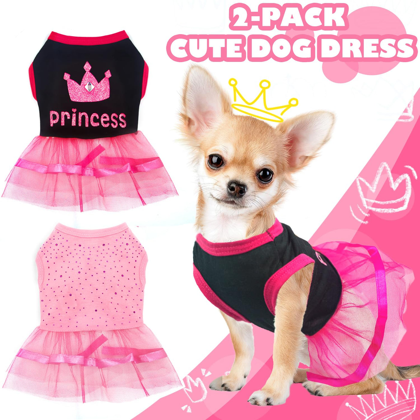 Size Information: Xxs Back Length:20Cm/7.87In, Bust:30Cm/11.81 In,Fit In 1.5-3.8 Lbs. Xs Back Length:25Cm/9.84 In, Bust:35Cm/13.78 In,Fit In 3.8-5.9 Lbs. S Back Length:30Cm/11.82 In, Bust:40Cm/15.74 In,Fit In 5.9-9 Lbs. M Back Length:35Cm/13.78 In, Bust:45Cm/17.71 In,Fit In 9.1-14.8 Lbs. Specifications: Material: Fabric Color : Black,Pink Package Includes: 2 Pack Dog Dress Feature: The Extra Small Dog Clothes Colors Are Vibrant With Super Cute Designs On Them.Comfortable And Best Colors. Perfect For Everydays Wear, Weekend Parties, Birthdays, Weddings, Parades, Photo Shoot Or Play Date. Fit For Chihuahua, Poodle. Cup Poodle, Yorkshire Terrier, Bichon Frise, Cocker Spaniel, Pomeranian,Cat, Rabbit, Fox And Other Small Breed Dogs Outfit.