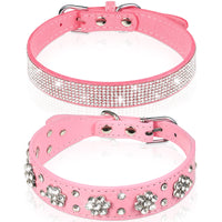 Features:Such delicate and stylish pet collars, nice gifts for your beloved pets, and good to share with friends, families and colleagues who have pets.The rhinestone leather dog collar is soft, skin-friendly and comfy to wear, you don't need to worry about it will scratch your pet's neck. The buckle design above the collar is strong, will not easily fall off, making your animals safe. Specifications:Material: microfiber, PU leather, rhinestoneColor: pinkSize: as the picture shownPackage includes:2 x PU Leather dog collarsNote:Due to the different monitor and light effect, the actual color may be a little different from the pictures.Since the size above is measured by hand, the size of the actual item you received could be slight different from the size above.Please don't hit our products with heavy objects.