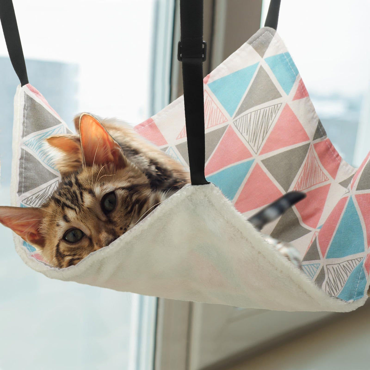 2 Pieces Reversible Cat Hanging Hammock Soft Breathable Pet Cage Hammock With Adjustable Straps And Metal Hooks Double-Sided Hanging Bed For Cats Small Dogs Rabbits (Geometry Pattern, M)