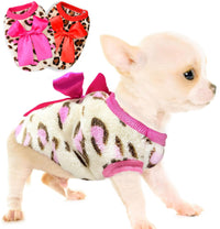 2 Pieces XXS Dog Sweater for Small Dogs - Leopard Teacup Chihuahua & Yorkie Puppy Clothes (Pink+RED, XX-Small)