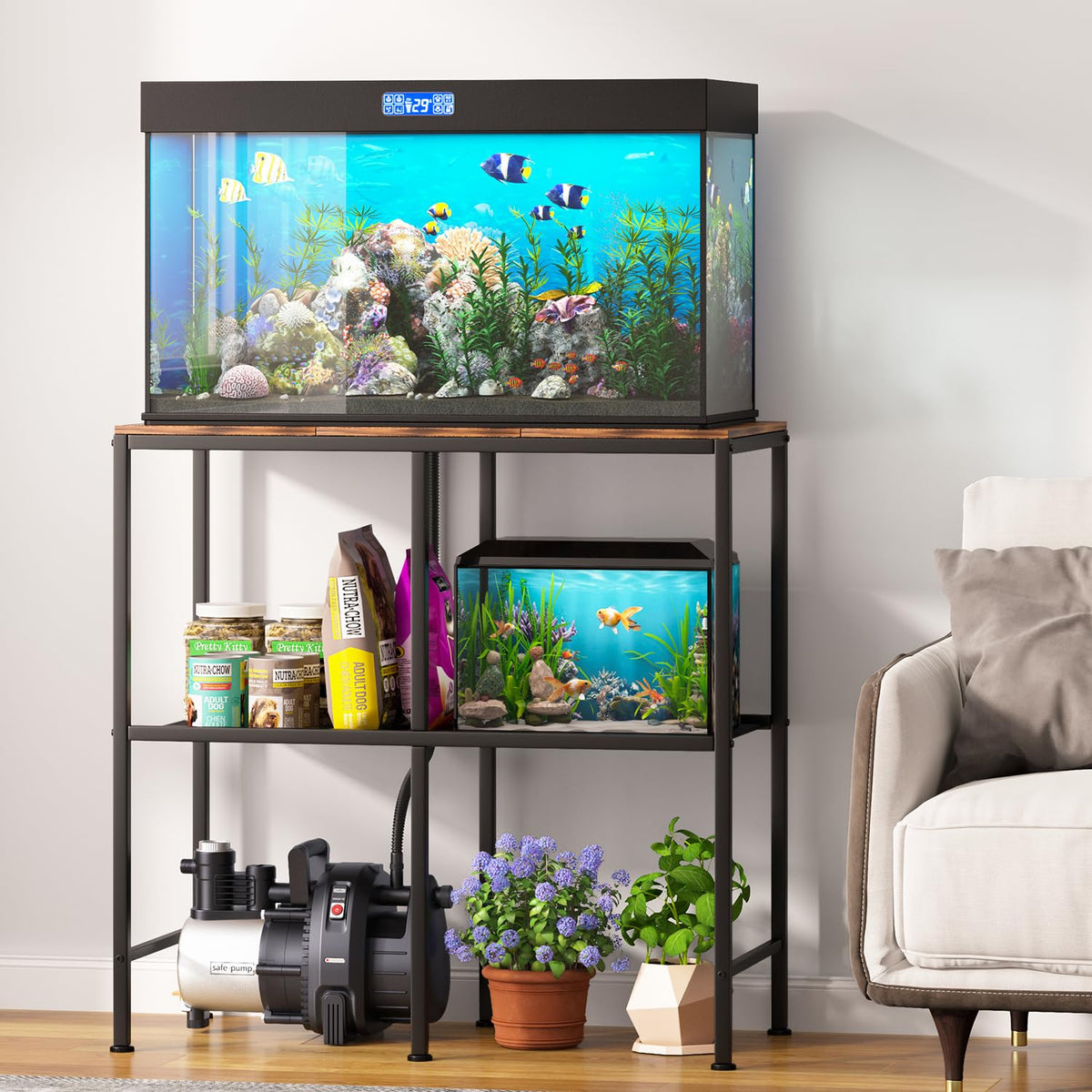 20-29 Gallon Fish Tank Stand, Aquarium Stand with 2-Tier Storage Shelves, 31.5 L x 15.7W, 6-Leg Metal Frame for Reptile Breede
