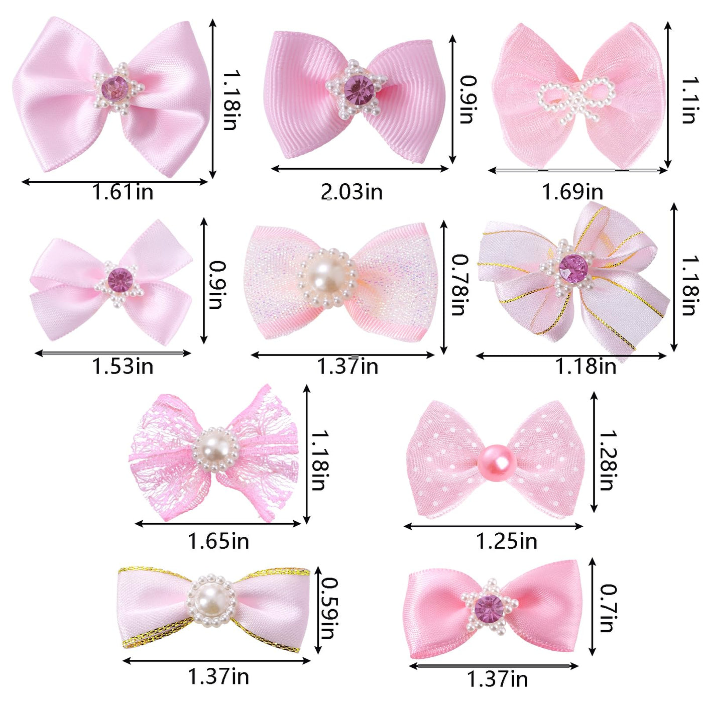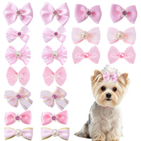 20 Pcs Cute Dog Hair Bows With Rubber Bands Elastic Handmade Mix Style Lace Rhinestone Pearls For Furry Puppy Cat Pet Girl, Pink