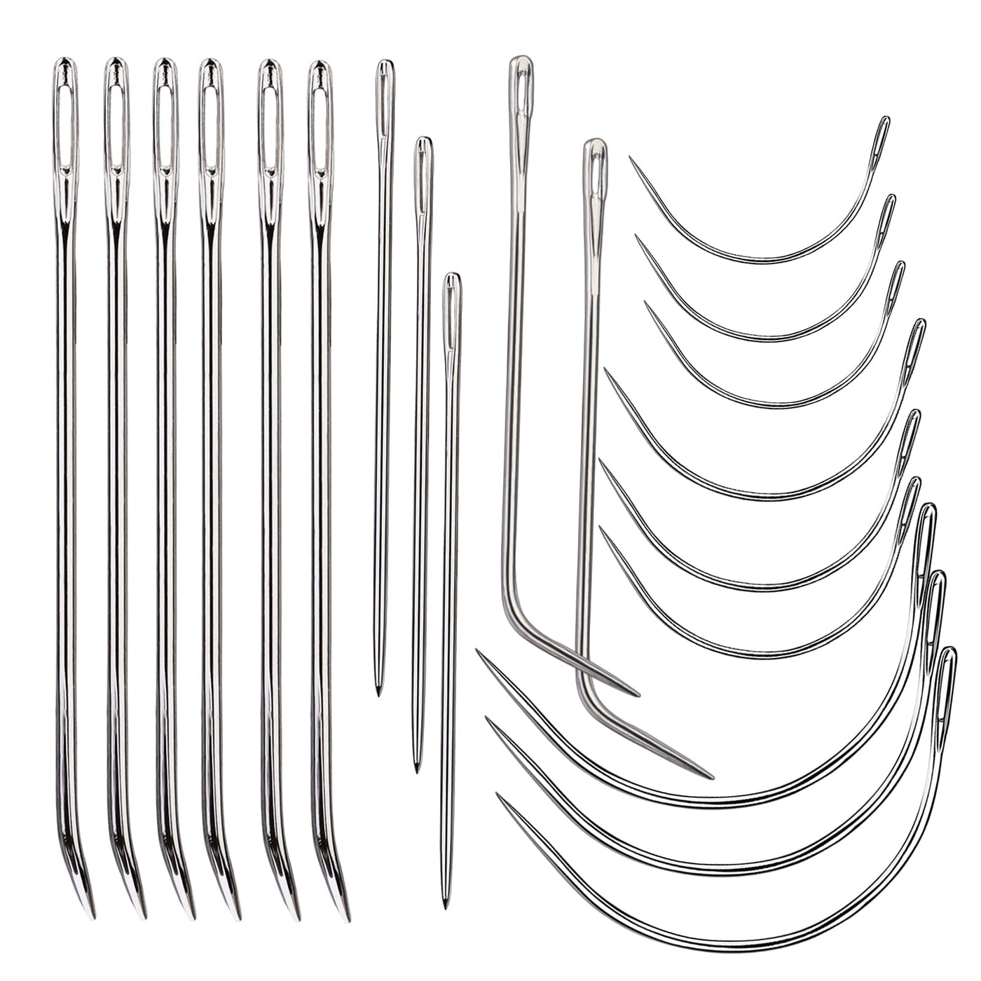 Needles Size: Pointed hand sewing needle: 255 inch (3pcs) Sack needle: 216 inch (2pcs) 295 inch (6pcs) curved needles: 2 inch (3pcs) 25 inch (3pcs) 3 inch (3pcs)