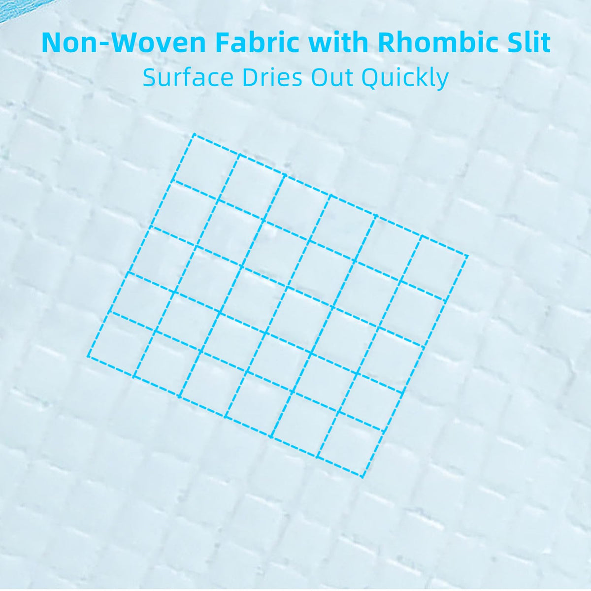 [PRODUCT SIZE] Product measures 22x22 Inches (Length x Width), this regular-size training pad is suitable from small puppies to medium dogs. Includes 200 pads per pack. | [5-LAYER CONSTRUCTION] Our training pads are made with 5 layers: non-woven cloth as the first layer to allow urine to flow through; the second and the fourth layers are made from paper tissue to add absorbency; the third layer is also the core layer is made from Super Absorbent polymer, and the back layer is a water-proof plastic protecting layer. | [QUICK ABSORBENT & LEAK PROOF] With a Super Absorbent core that can lock in moisture by instantly absorbing and turning liquid into gel, each training pad can hold up to 3 cups of water. This product also featured with plastic back and border to prevent any leaking. | [BUILT-IN ATTRACTANT] With a built-in attractant that helps direct your dog to the pad, which could help you achieve a successful housebreaking. This training pad not only can absorb odor and pet urine, but also help protect your expensive hardwood and carpet. | [MULTI-APPLICATION] This product can be used for house-training puppies or assisting senior dogs, this product can be placed at home when you are outside, or in dog crates when traveling.