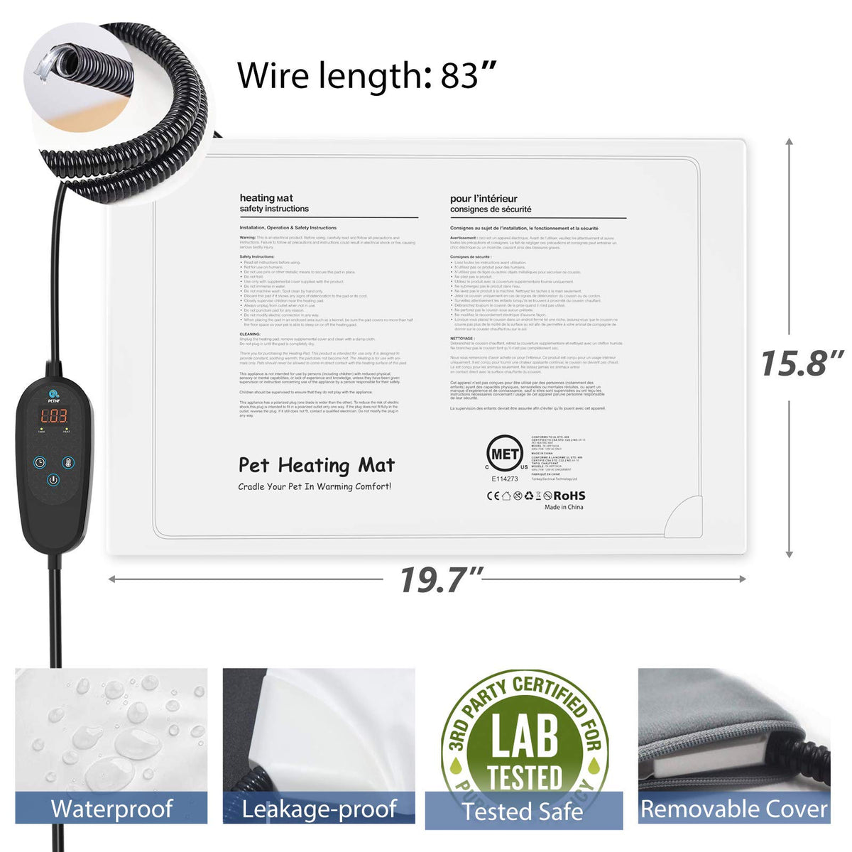 Petnf Are Focus On Designing And Producing Pet Products Which Can Manke Our Fur Friends Live Bettermain Features: -Ic Control Box With Led Indication -6 Temperature Levels To Adjust (86-13130-55) -6 Timer Levels To Adjust (2481224H) -55-Degree Thermal Protector -Fuse Inside Of Controller -Single Circuit Provides Consistent Temperature -Soft Pvc Envelope Enclosure With Waterproof -Chew Resistant Cord Casing -Clean Pad With A Damp Cloth -Flexible-Fits Most Pet Beds Attention: -For Pet Use Only Not For Human Use -Do Not Use The Cord As A Handle -Do Not Puncture Or Use Any Sharp Object To Secure The Pad In Place -Unplug When Not In Use -Do Not Make Any Modifications To Switch Button, Wires And Heat Element -Do Not Use Another Electronic Heating Device In Conjunction With Your Heating Pad -Donat Use In Conjunction With A Pet Bed, Donat Cover Anything On A Heating Mat -Do Not Immerse Pad In Water Product Specifications: -Input: Ac 100V120V 5060 Hz -Color: Gray Blue Brown -Material: Pvc Inner Envelope + Fleece Cover Package: -One Fleece Cover -One Heating Mat -One Controller -One Instruction