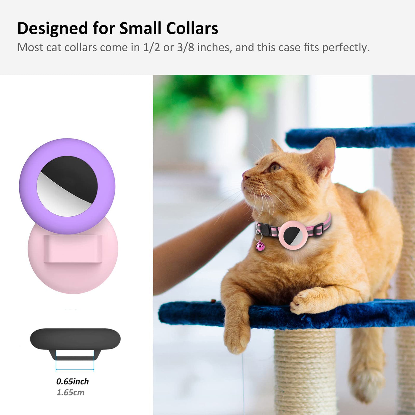 2022 Airtag Cat Collar Holder, Small Air Tag Cat Collar Holder Compatible With Apple Airtag Gps Tracker, 2Pack Waterproof Case Cover For Cat Dog Pet Collar Within 3/8 Inch (Pink&Purple)