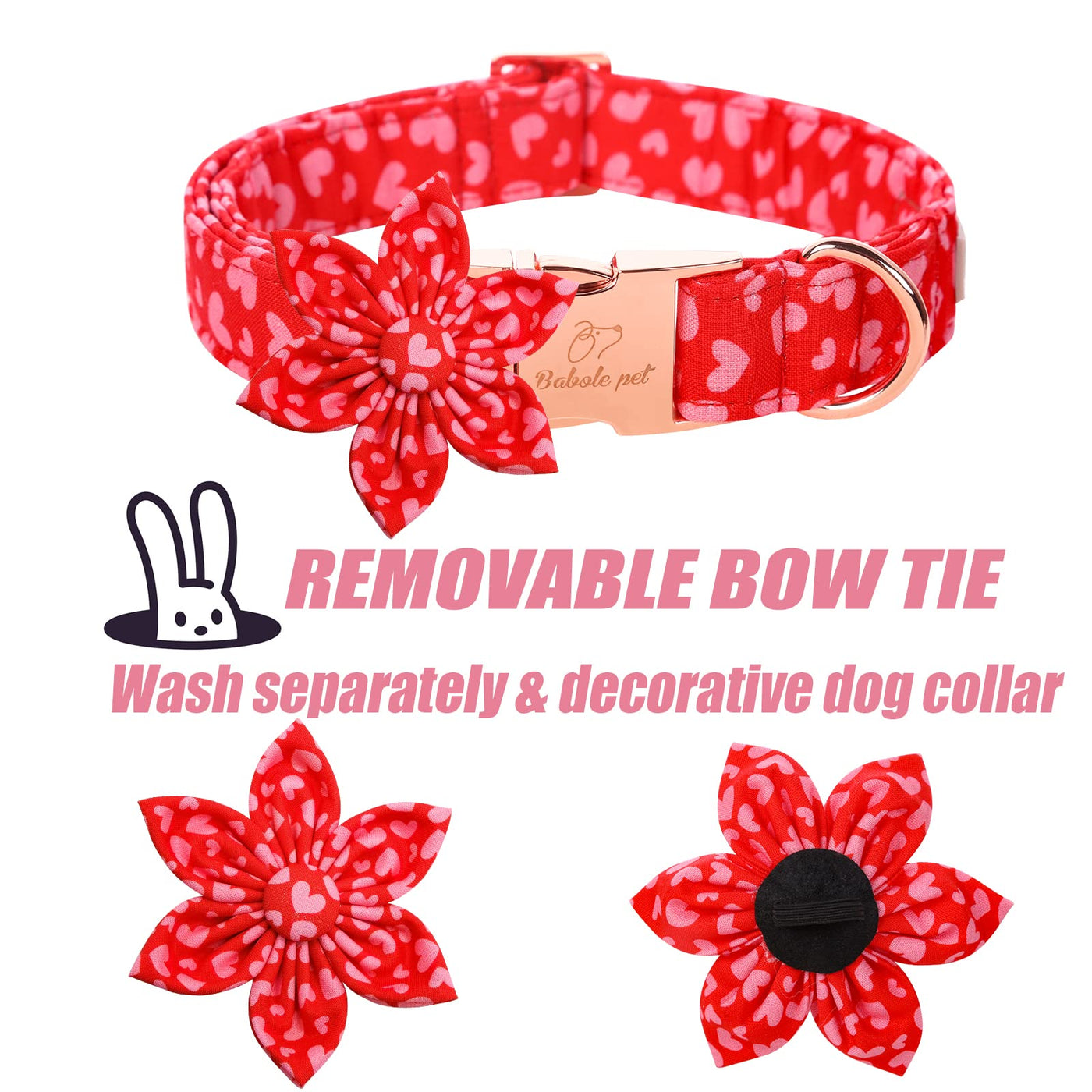 2023 New Valentine'S Day Dog Collar Flower Tie-Babole Pet, Pink Red Love Male Dog Collar With Safety Metal Buckle Adjustable Puppy Collars For Small Medium Large Boy & Girl Dog,M-Neck 13.5'-22'