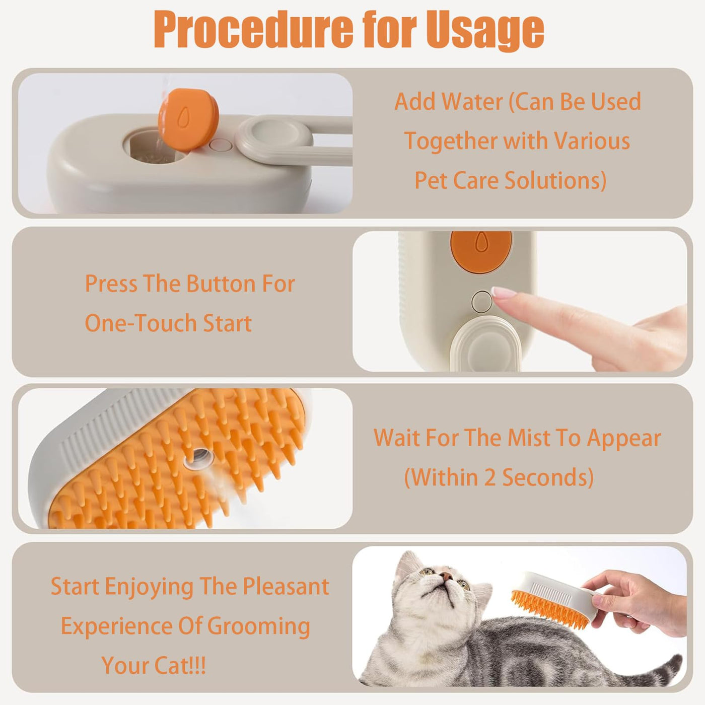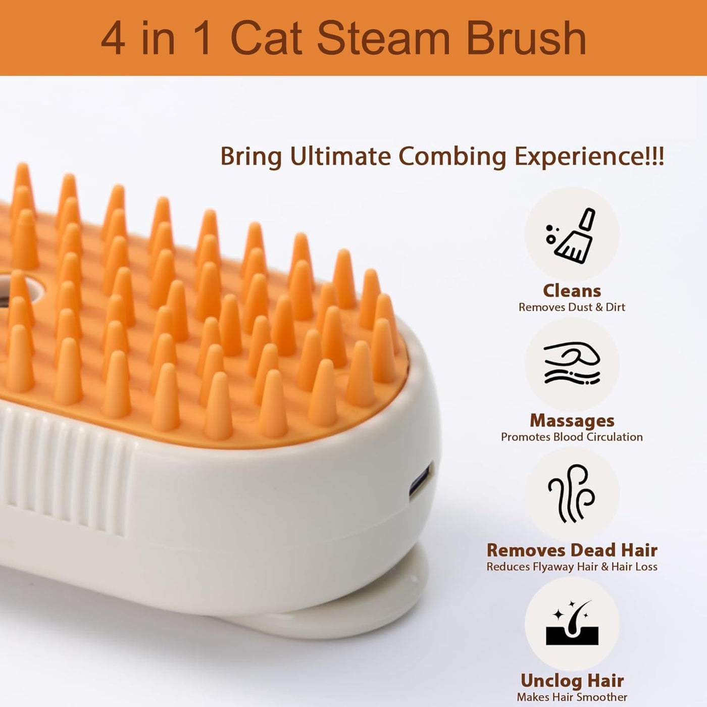 2025 New 4 In 1 Cat Steam Brush,Spritz Defur Comb For Shedding & Grooming,Massage,Self Cleaning, Pet Spray Hair Removal Comb For