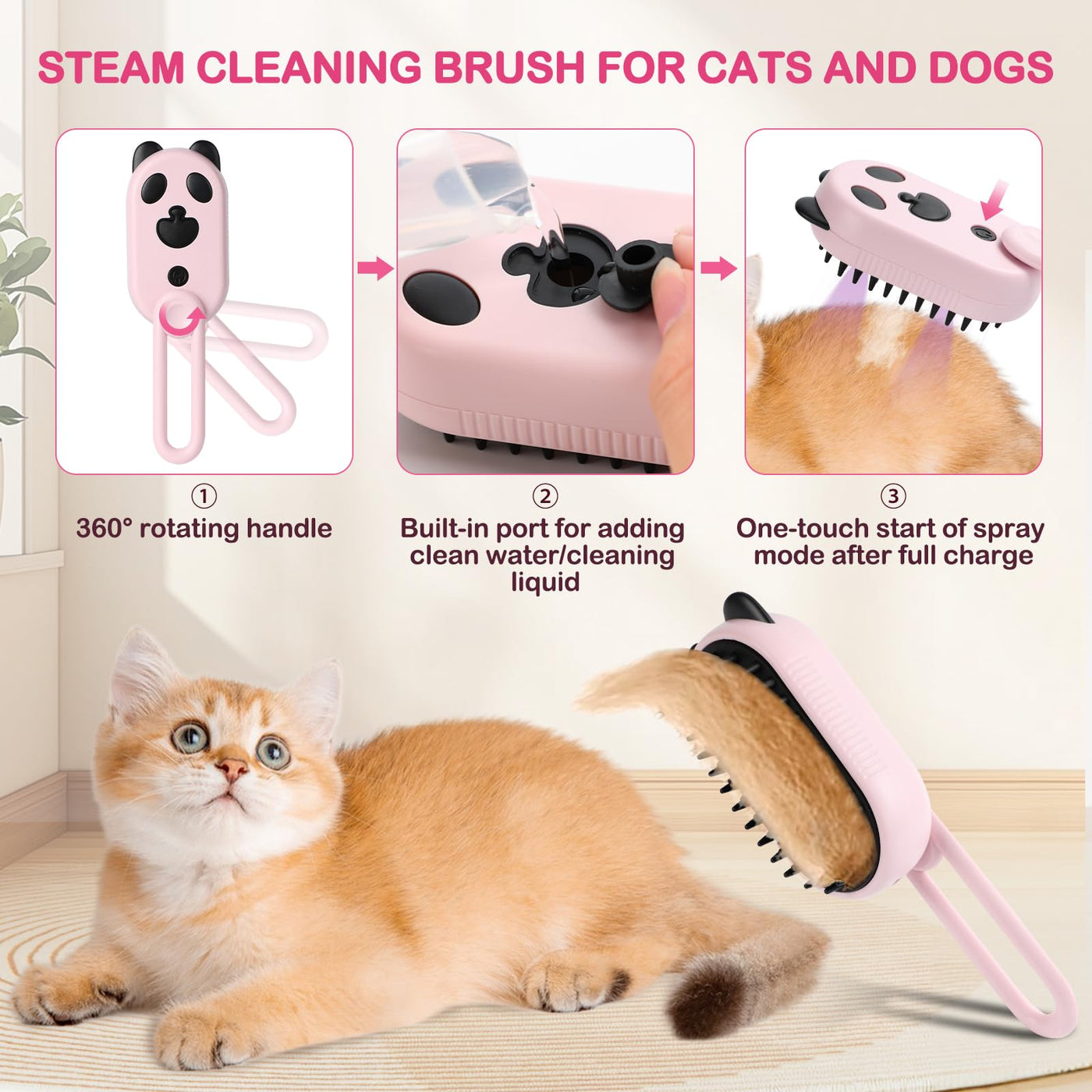 2025-New Cat Steam Brush For Shedding, 4 In 1 Brushs With Foldable Handle, Steam Brushs For Cats,Water Brush For Cat, Pet Spray