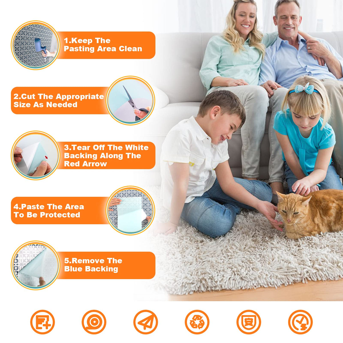 Cats Are Very Fond Of Exploring And Scratching Objects They Are Interested In. At This Time, Your New Sofa Happens To Be Its Latest Target. What Should We Do? We Need To Protect Our New Home And Care For Small Animals. At This Time, You Need A Way To Take Care Of It. While Protecting Your Home, You Also Need To Slowly Train And Guide The Cat'S Behavior. The New Generation Of Cat Scratcher Can Achieve This. Once You Have Good Cat Behavior, You No Longer Need Cat Scratch Protectors For Furniture Or Worry About The Cat'S Behavior Because It Knows It'S Not A Fun Place To Be.The Advantages Of The New Generation Cat Anti Scratch For Furniture:1. Easy To Peel Off, Easy To Install: The Red Arrow Design Makes It Easy To Peel Off, So The Couch Scratch Protector From Cats Is Very Easy To Operate.2. Ultra-Thin And Transparent: Adhere To The Surface Of The Furniture And Fully Integrate Into The Interior Decoration Style. This Cat Scratch Couch Protector Will Not Affect The Beauty Of Sofas Or Other Furniture, And The Adhesive Tape Has Strong Toughness.3. Double-Sided: Sofa Protector For Cats Makes It Easier To Train Cats' Behaviors While Protecting The Furniture.4. No Traces: Cat Scratch Deterrent Tape Produced By A New Generation Of Adhesive Materials Is Easy To Remove Without Leaving Traces.How To Install Cat Protectors For Furniture:1.Keep The Paste Area Clean.2.Cut The Cat Scratch Tape As Needed.3.Tear Off The White Backing.4.Paste The Area That Needs To Be Protected.5.Finally, Remove The Blue Backing.Features:1. Suitable Size: 12''L* 8''W, Easy To Cut.2. New Material, More Fit, Easy To Peel Off Without Hurting The Fabric.3. Transparent Double-Sided Design, More Applicability.Tips:1.Scratch Protectors For Furniture Are Not Recommended For Use On Faux Leather, Leather, Velvet Or Microfiber.2.Replace Double Sided Tape For Cats Regularly Until Cats Develop Good Behavior.