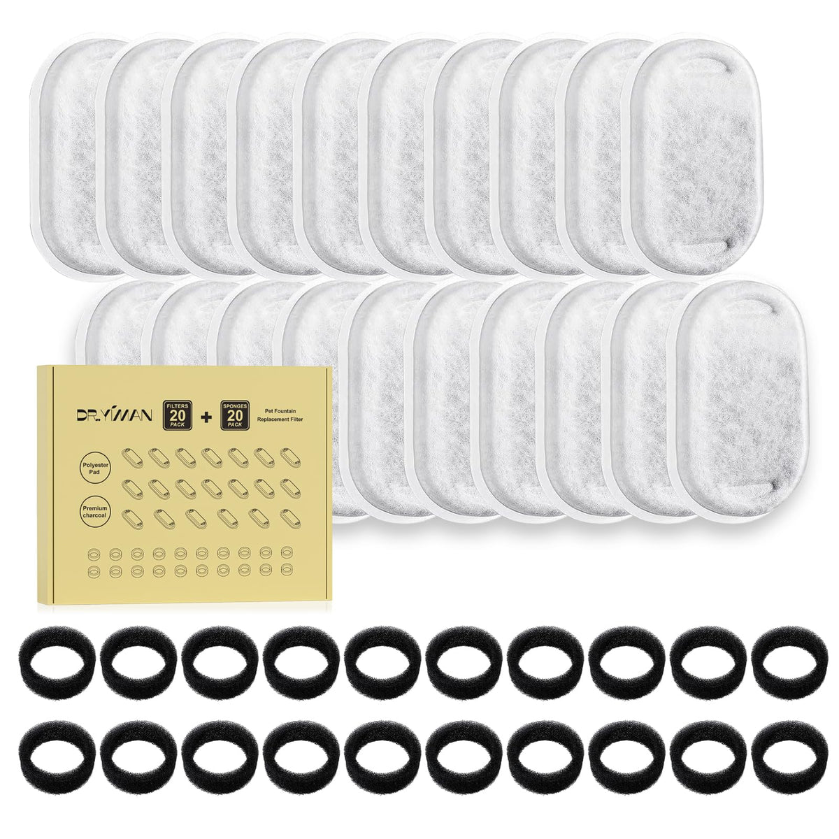 20Pack Cat Water Fountain Filters For Stainless Steel 108Oz/3.2L& 67Oz/2L, Cat Fountain Filters Replacement For Adjustable Water Flow Cat Water Fountain, Dog Water Fountain Filters