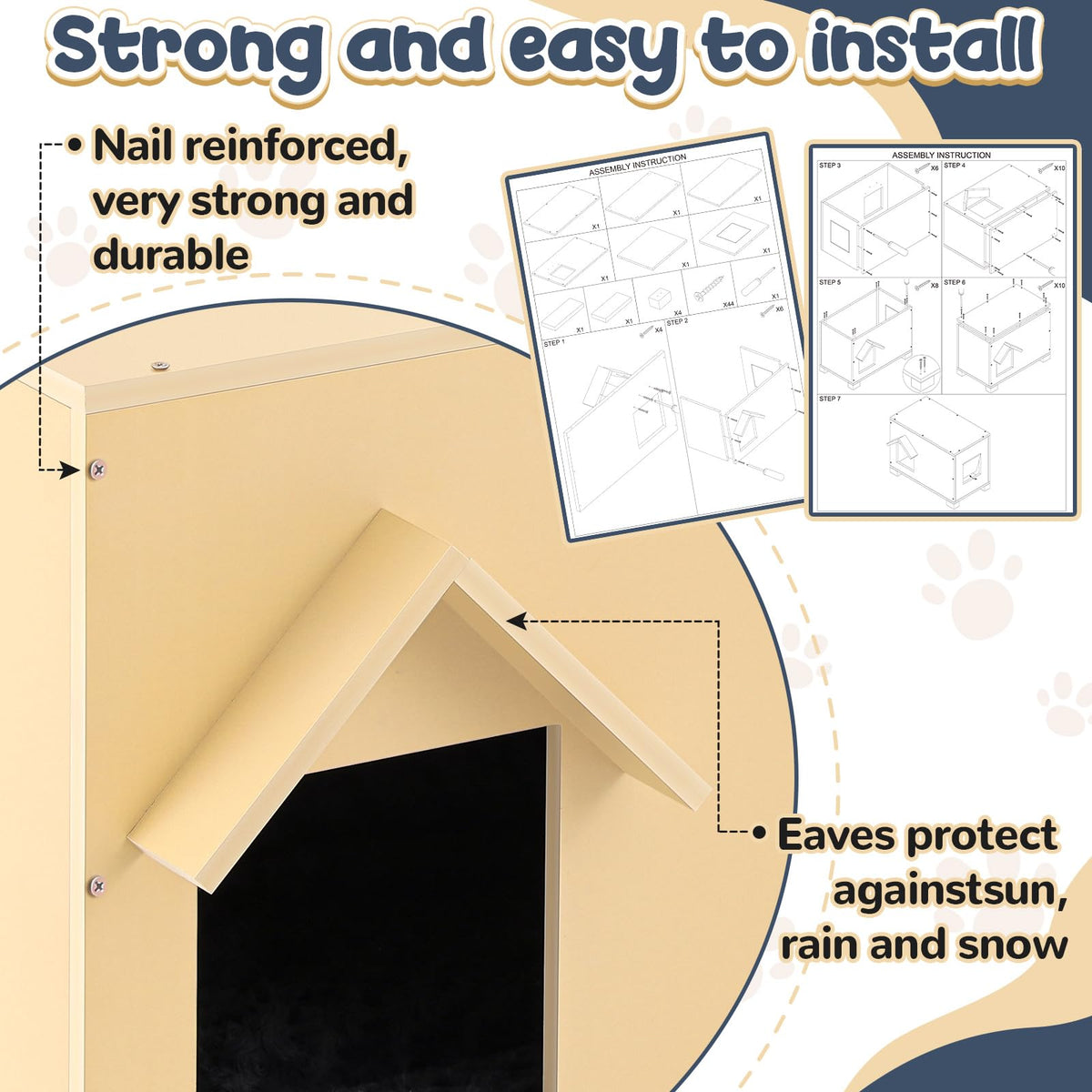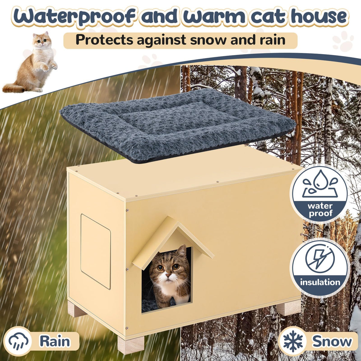 Features: Outdoor Pet House Give Your Pet The Freedom To Enjoy The Outdoors While Ensuring They Have A Warm, Safe Space. The Wooden Cat House, Along With The Provided Pet Pad, Provides Not Only A Practical Shelter For Your Cats But Also A Comfortable And Warm Space. Specifications: Material: Outdoor Cat Houses: Wood Plastic Board Pet Pad: Fabric Color: Outdoor Cat Houses: Wood Color Pet Pad: Dark Gray Size: Outdoor Cat Houses: 15.8 X 23.6 X 15.4 Inches/ 40 X 60 X 39 Cm Pet Pad: 15.8 X 23.6 / 40 X 60 X Cm Package Includes: 1 X Outdoor Cat Houses 1 X Pet Pad Notes: Manual Measurement, Please Allow Slight Errors On Size. The Color May Exist A Slight Difference Due To Different Screen Displays. Small Parts Included, Please Keep Them Away From Little Kids To Avoid Swallowing Risk.