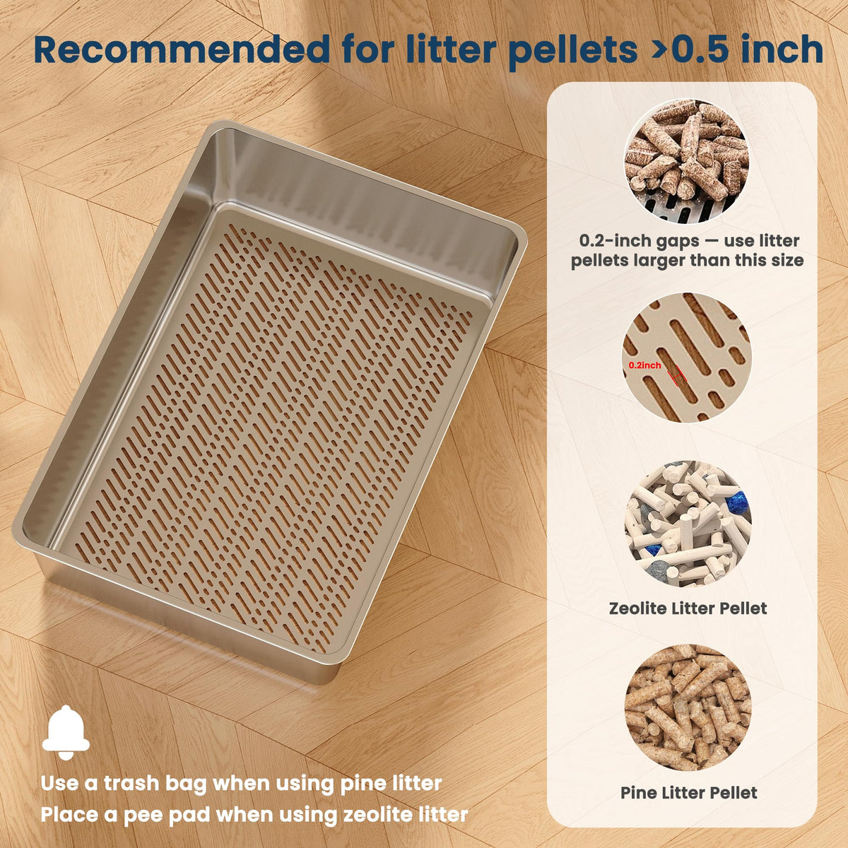 Tiuubt Stainless Steel Sifting Litter Box: Extra-Large (23.6 X 15.7 X 5.91 Inches), 5.91 Inches High. Leak-Proof, Durable, Scratch-Resistant, And Easy To Clean. Compatible With Pine Pellets And Other Litters. Includes Scoops, Anti-Slip Pads, Liners For Easy Maintenance.