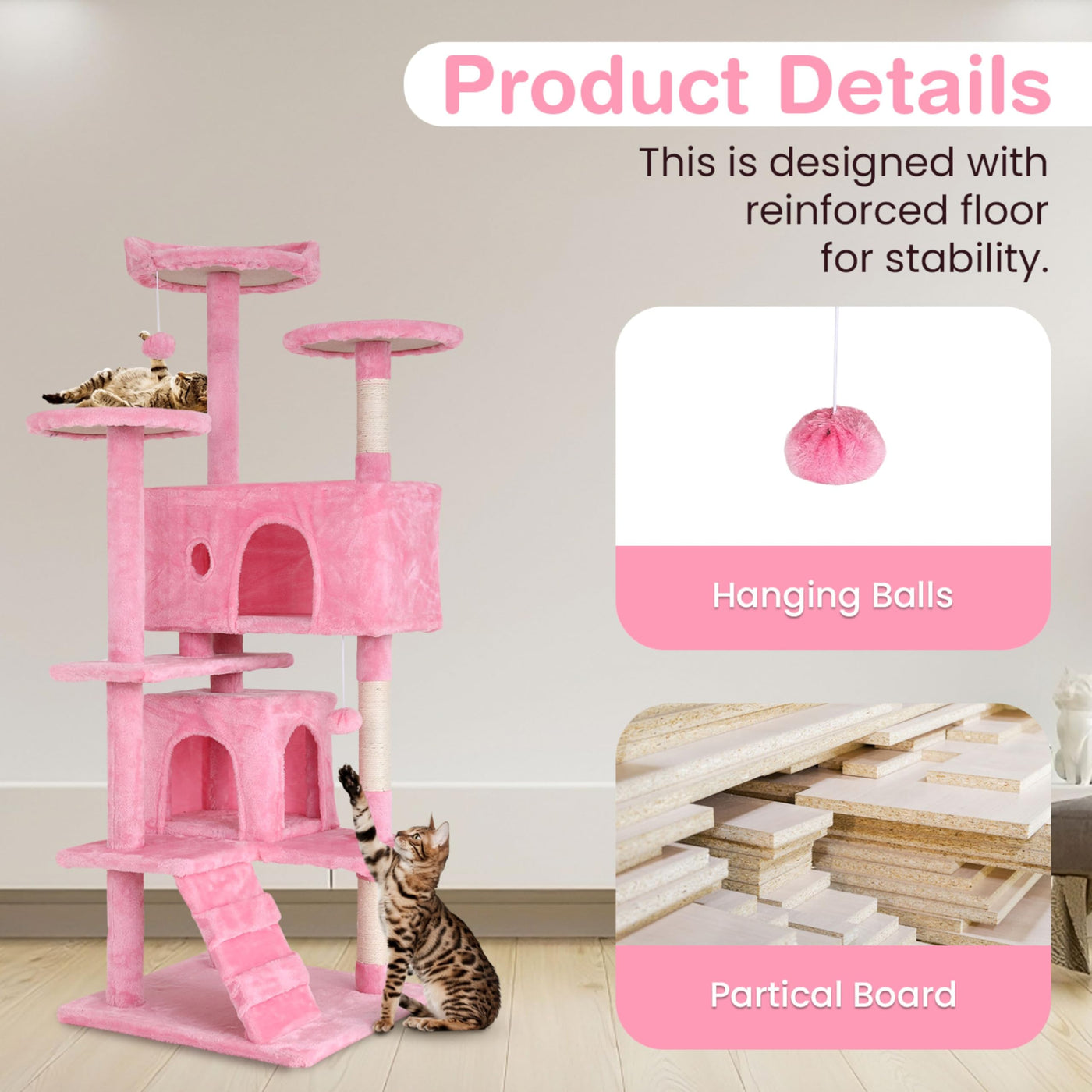 Maximize Playtime And Health With Our Durable Cat Climbing Towerour Cat Tree Tower Is The Perfect Addition To Your Indoor Cat Playground.Designed For Durability And With Multiple Levels, This Robust Cat Climbing Tower Serves As Both A Vigorous Play Area And A Secure High Perch.Regular Activity On This Tower Helps Maintain Your Cats Physical Health And Mental Alertness, Essential For Any Indoor Pet.This Essential Piece Of Cat Supplies Supports Their Natural Behaviors In A Safe And Enjoyable Environment.Comfort Meets Convenience: Plush Retreat For Cats And Ownersoffer Your Cat A Luxurious Spot To Unwind With Our Cat Shelves.Outfitted With Plush, Inviting Surfaces, This Cat House Integrates Seamlessly Into Any Room, Allowing Your Cat To Relax In Comfort Without Sacrificing Your Living Spaces Style.Ideal For Placement In A Living Room Corner, This Pink Cat Tree Keeps Your Cat Close For Bonding Moments, Enhancing Your Connection As They Snuggle Into Their Cozy Nook-Your Furniture Free Of Fur.Elegant Design That Enhances Any Decorour Large Cat Tree Isnt Just Functional-Its Designed To Be A Visually Appealing Part Of Your Home Decor.The Elegant Pink Hue And Sleek, Modern Design Blend Beautifully With Any Interior, Elevating The Style Of Your Space While Providing Your Cat With A Stimulating Environment.This Tall Cat Tree Fits Perfectly Into Your Lifestyle, Offering A Safe And Attractive Cat Accessory For Indoor Cats That Enriches Your Home Life And Keeps Your Feline Friend Engaged And Happy.