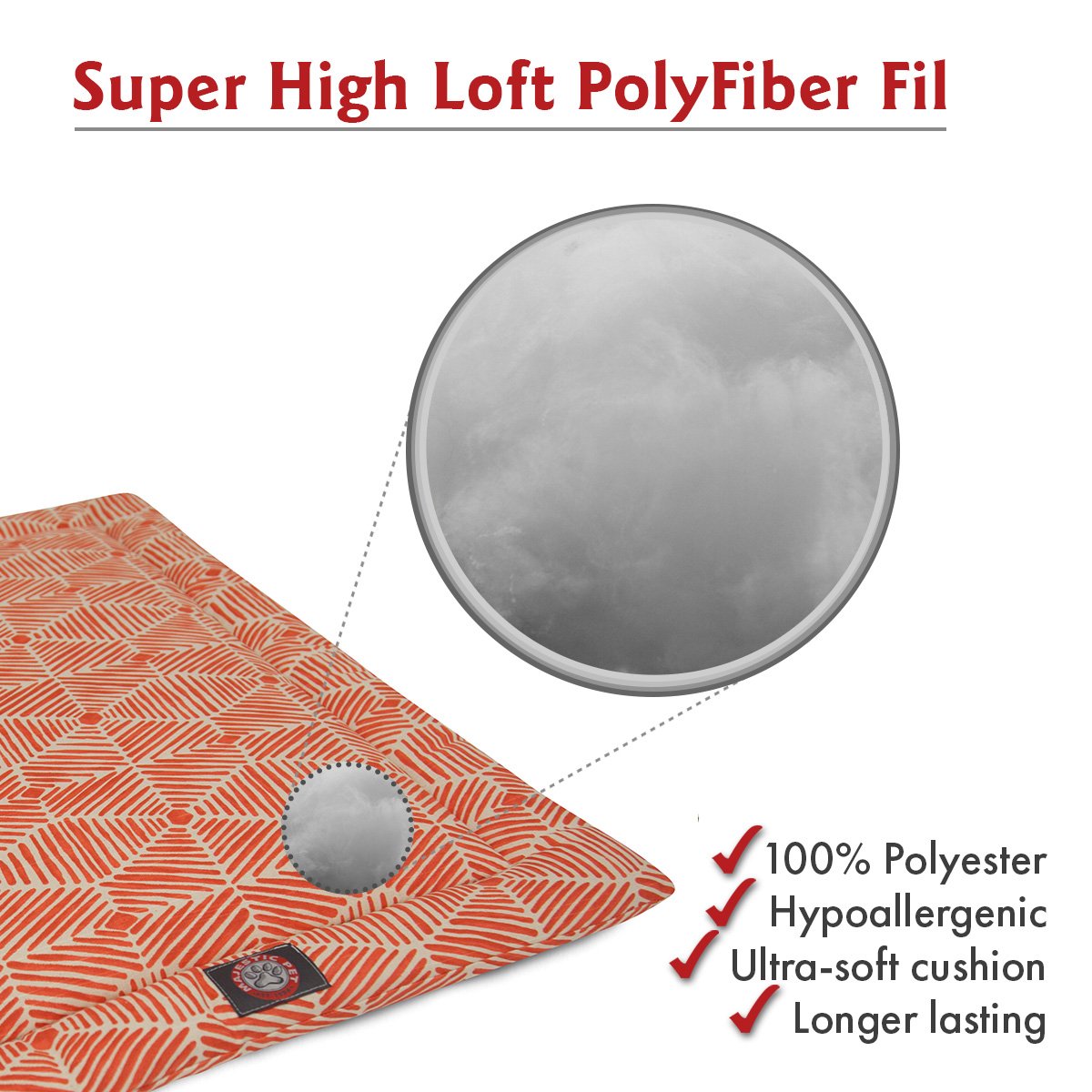 The 24 Inch Charlie Salmon Orange Crate Dog Bed Mat By Majestic Pet Products is stuffed with super premium high loft, yet soft polyester batting, which ensures an orthopedic and snug rest anywhere in the house with unbeatable comfort.