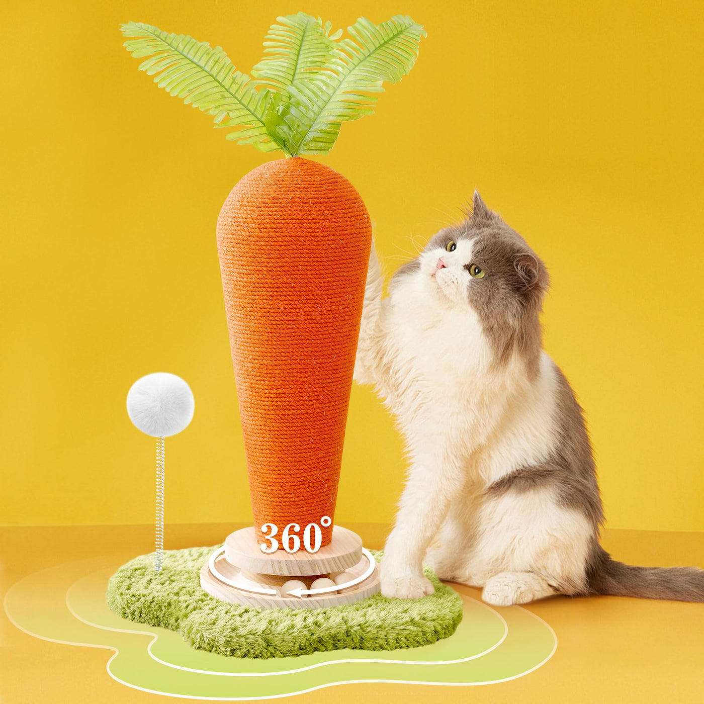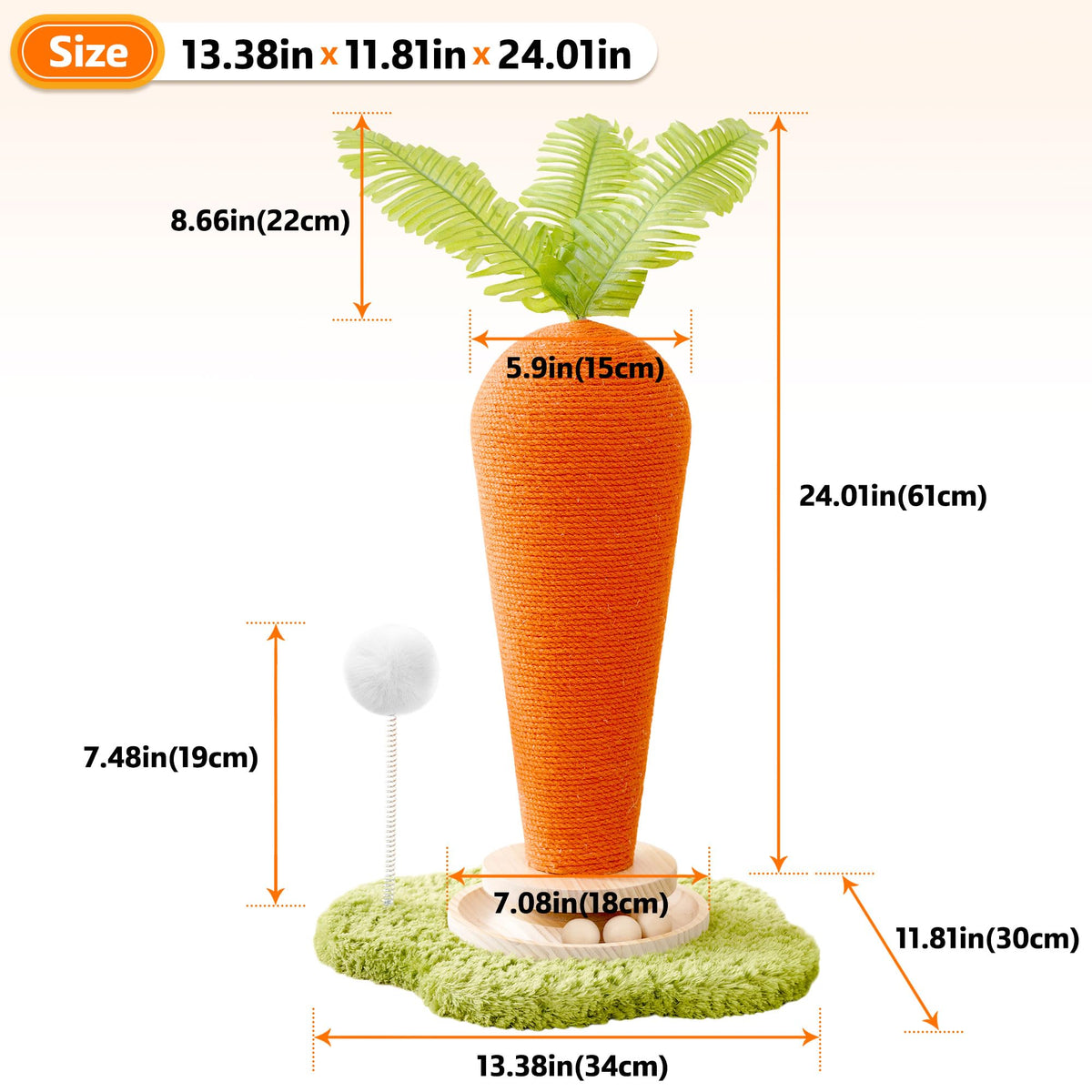 24' H Cat Scratching Post Carrot With Catnip, Cute Cat Scratcher Post With Durable Natural Wooden Turntable Toy, Carrot Shape De