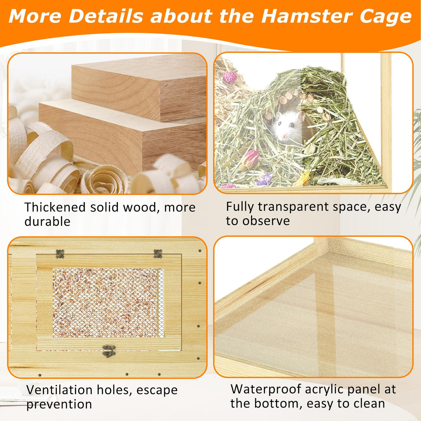 Our Large Hamster Cage Is Made With Thickened Solid Wood Materials To Ensure Stability And Durability. It Is Equipped With Bronze Locks For The Wire Mesh Windows And Double Child Safety Locks On The Sliding Door, Ensuring Extra Safety And Preventing Pet Escapes. These Safety Features Make It Suitable For Households With Babies And Other Pets. Choose Nalwort, The Preferred Choice For Hamster Happiness