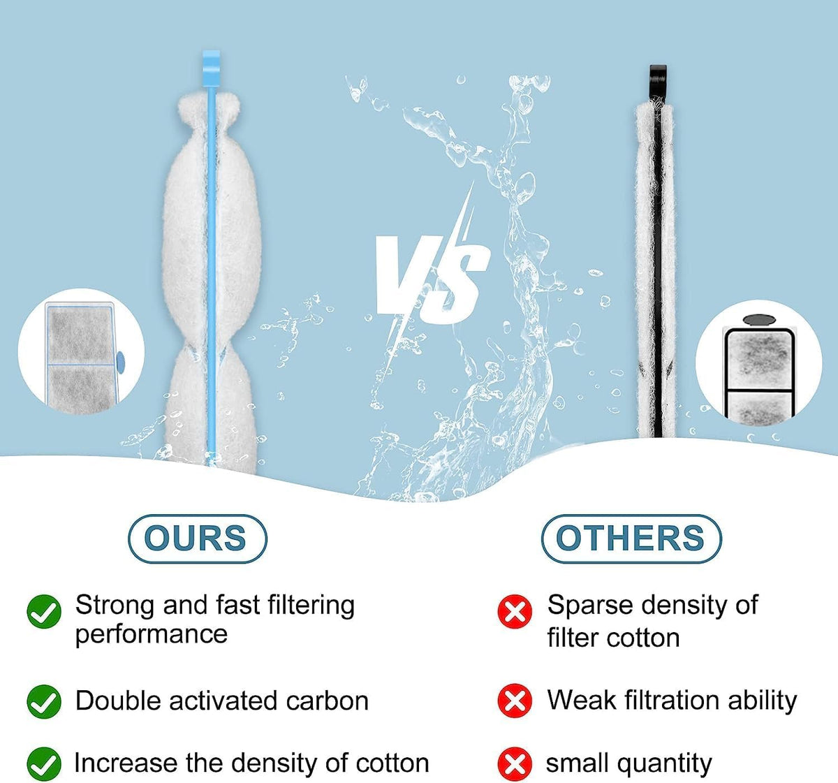 Features: Thickened Filter Cotton Super Adsorption And Cleaning Ability. Better And Faster Absorption Of The Filth And Sundries In The Water. Offer Clean And Healthy Water For Fishes. Special Filter Material--Zeolite It Can Adsorb Ammonia, Heavy Metals And Other Harmful Components In The Water Rinse Before First Using Note: Rinse New Filter Cartridge Under Room-Temperature Water To Remove Any Dust. Then Place New Filter Cartridge Into Filter By Aligning Key Slot. Gently Press Filter Cartridge Into Place. Package Include: 6 Pack Filter Cartridges For Top Fin Ef-S Element And Bf5 Bettaflo