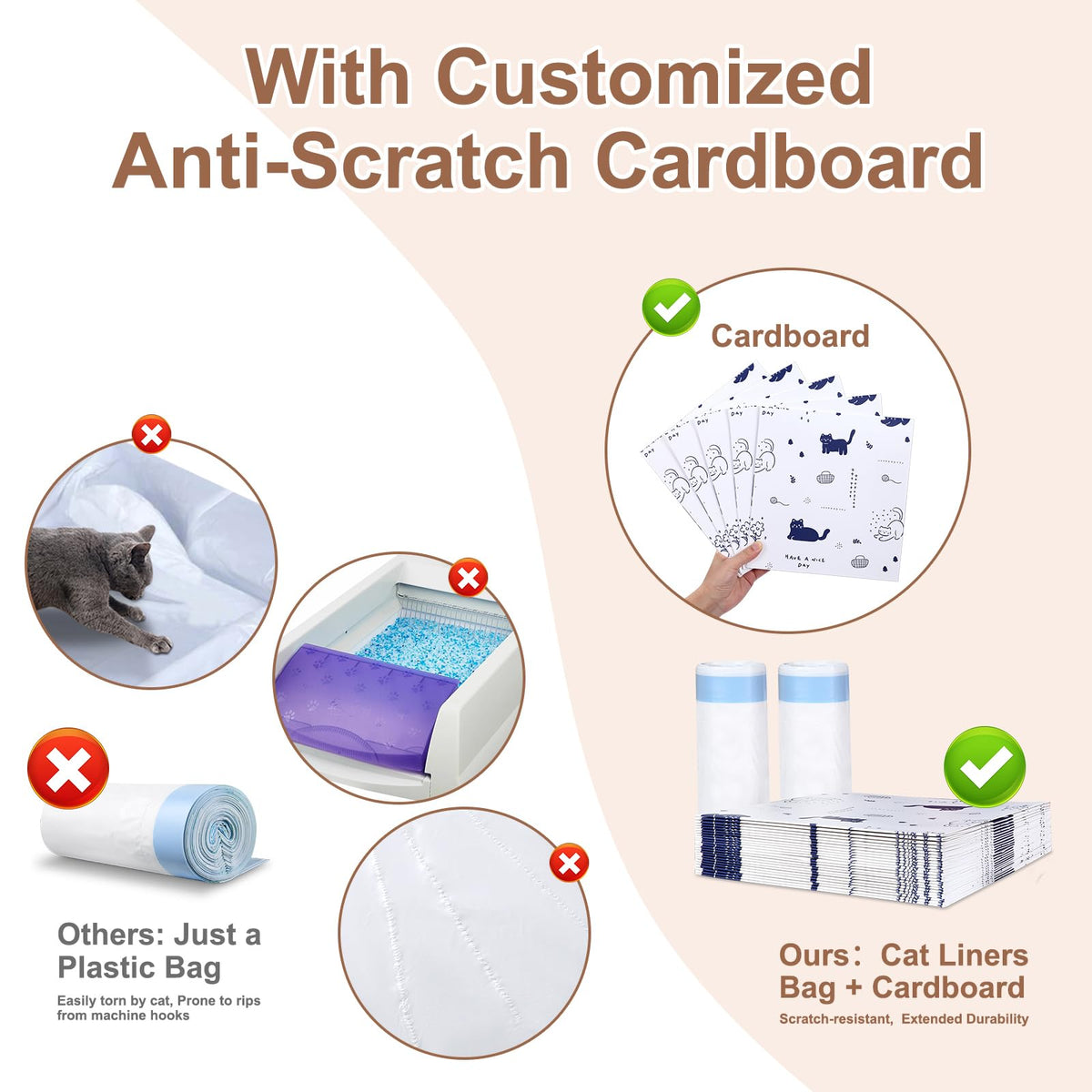 Committed to providing high quality pet supplies for you and your fur babies, KropBom did a lot of research on the material of pet supplies in the past years.KropBom litter box liners bag are crafted for convenience and durability. Made from tear-resistant, waterproof materials, these liners prevent leaks and tears. The drawstring design makes pet litter box cleanup easy and efficient. Compatible with Most Cat Litter Box TrayCustom-designed for the safe pet scoopfree self cleaning litter box tray,include reusable litter trays and disposable crystal litter tray. With large size 37 inches x 17 inches, KropBom litter box liners bag also compatible with most standard litter boxes. With CardboardIt comes with customized cardboard to create an anti-scratch barrier between the litter liner and the cat. Double guarantee the bag never gets stuck on the auto-rake of scoopfree automatic cat litter box, ensuring the rake runs smoothly. No holes, no rips, and no stuck!With DrawstringThe cat litter bag features a convenient drawstring closure allows for quick and easy disposal, while the reinforced seams prevent leaks and spills, ensuring that your cat s litter box stays clean and odor-free.Save Your Money & Reducing Waste:Save over 50% on our cat litter liners. For reusable litter trays, reduce cleaning frequency; For disposable litter trays, no need to replace disposable trays frequently, it prevents urine from leaking onto the floor and soaking the tray causing the tray to collapse. reducing waste!In Package: 24 * Cat Litter Box Liners Bag24 * Cardboard 1 * Cat Toy