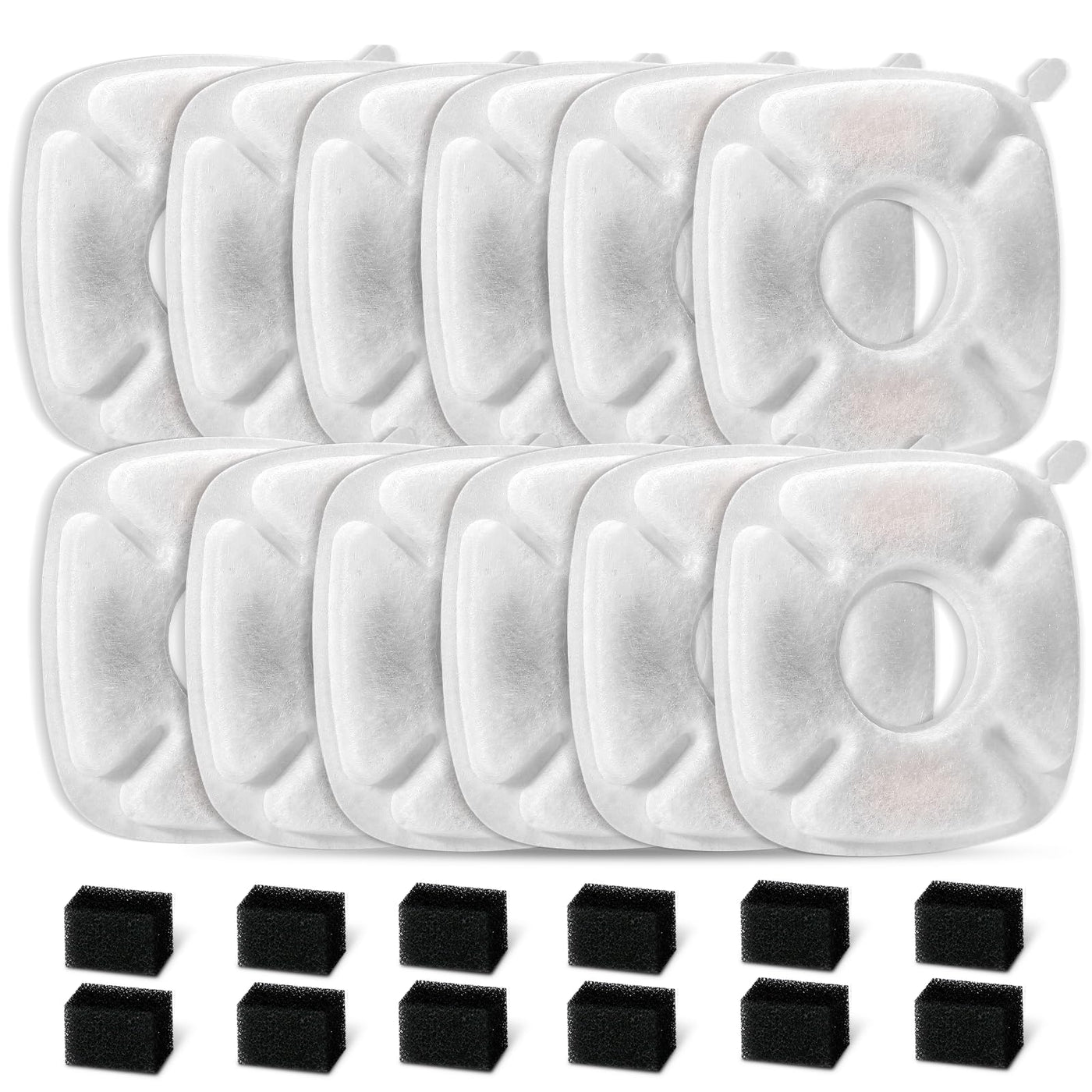 24 Pcs Cat Fountain Replacement Filters:12 Pack Replacement Filters With 12 Pack Pre-Filter Sponges, Pet Fountain Filter Fit For