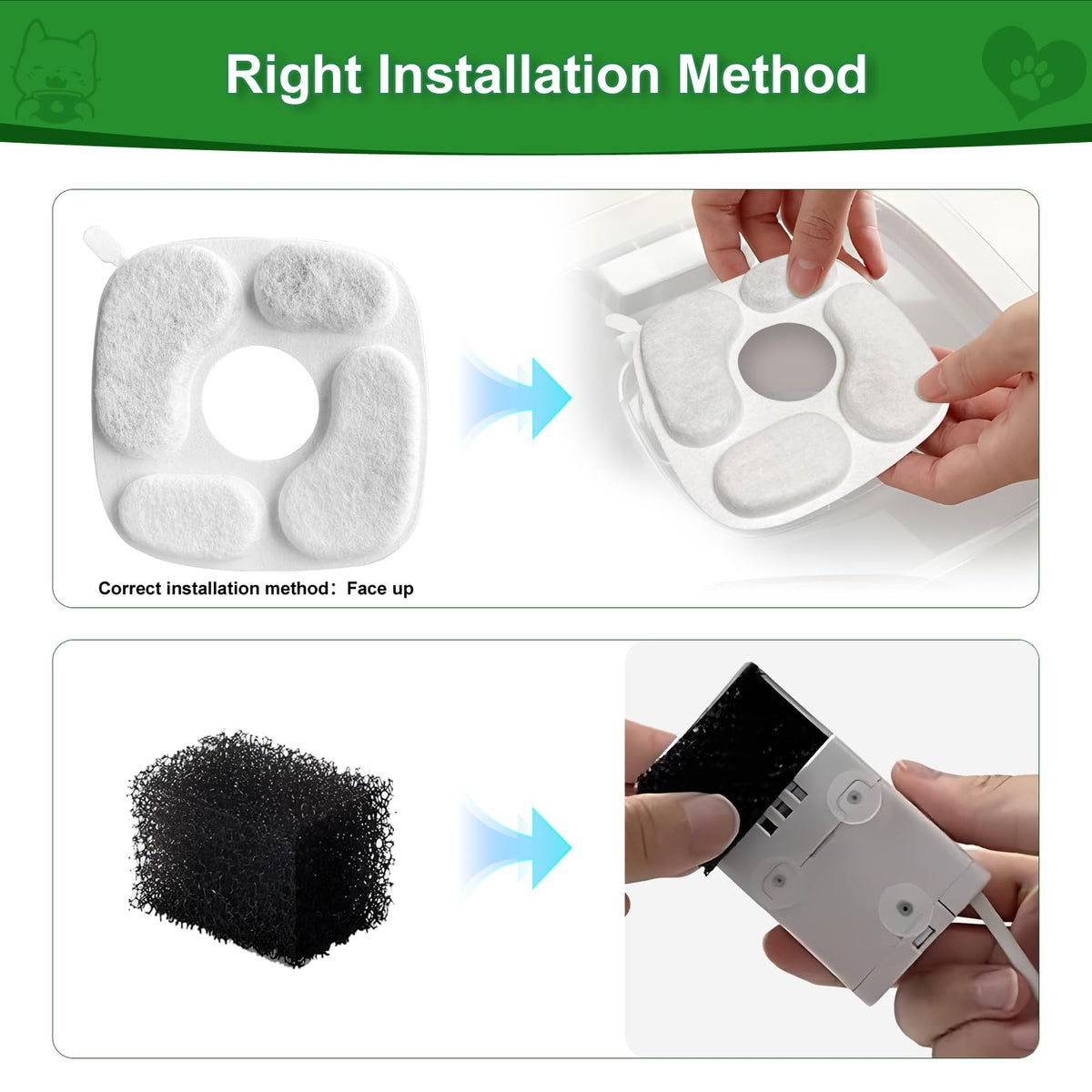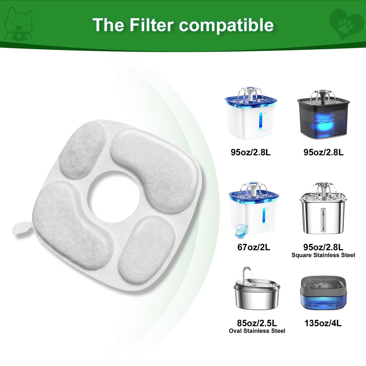 Manfcat Replacement Filters For Pet Fountain - 12-Pack Perfect Compatibility: These Manfcat Replacement Filters Are Specifically Designed To Fit 95Oz/2.8L And 67Oz/2L Pet Fountains, As Well As The 95Oz/2.8L Stainless Steel Cat Water Fountain. 24-Pack Value: Each Set Includes 12 Replacement Filters And 12 Pre-Filter Sponges, Individually Packaged To Keep Them Fresh And Ready For Use. Enjoy A High Flow Rate For Continuous Clean Water. High-Quality Materials For Optimal Filtration: Non-Woven Fabric: Catches Hair, Debris, And Sediment. Coconut Shell Activated Carbon: Absorbs Impurities And Odors, Ensuring Fresh, Clean Water. Ion Exchange Resin: Softens Water And Reduces Heavy Metals For Improved Water Quality. Pre-Filter Sponge: Captures Extra Hair And Debris Before It Reaches The Filter. Easy Prep & Maintenance: Before Use: Soak The Filter In Water For 2 Minutes, Then Rinse Thoroughly Under Running Water. Replacement Recommendation: For The Best Water Quality, Replace Each Filter Every 2-4 Weeks. Ensure Your Pet Always Has Access To Clean, Healthy Water With Manfcats High-Quality Filters!