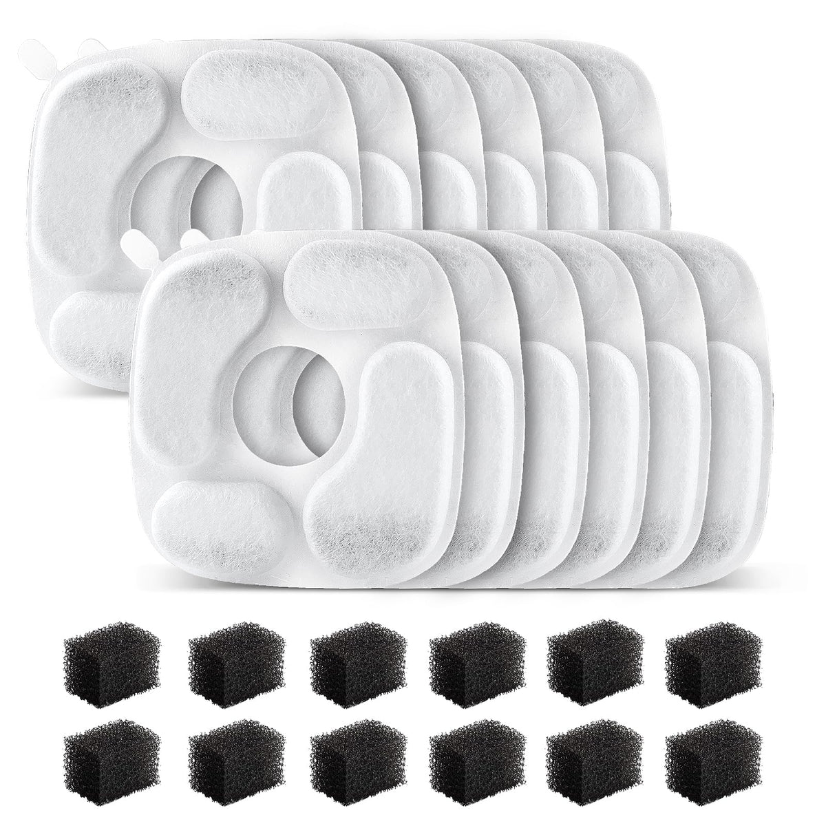 24 Pcs Cat Water Fountain Filter,12 Pack Filters & 12 Pack Pre-Filter Sponges, Compatible With 95Oz/2.8L Pet Fountain
