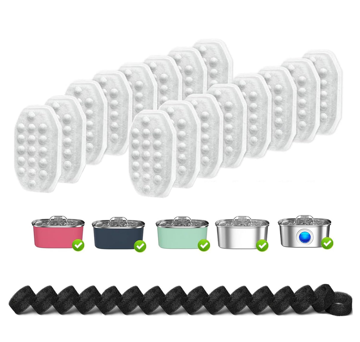 Filters Replacement Compatible With 3.2L/108Oz Stainless Steel Cat Water Fountain High Compatibility The Cat Water Fountain Filter Is Compatible With Neareal & Rellaty 108Oz/3.2 Stainless Steel Pet Water Fountain. Multiple Filtration Composed Of Cotton Layer, Activated Carbon And Ion Exchange Resin, Multiple Filtration Can More Effectively Filter Hair, Impurities And Heavy Metals, Soften Water Quality.Better Protect Your Pet'S Health. 24 Pcs Cat Water Fountain Replacement Filters Package Includes 12 Cat Fountain Replacement Filters And 12 Pre-Filter Sponges, Enough For 3 To 6 Months. Replacement And Use Change The Cat Fountain Filter Every 2 To 4 Weeks.Please Note: To Prevent Activated Carbon Dust From Falling Into The Water, Soak The Filter For 5 Minutes Before Use. Please Note: Please Check Your Fountain Model Number Before Purchasing.