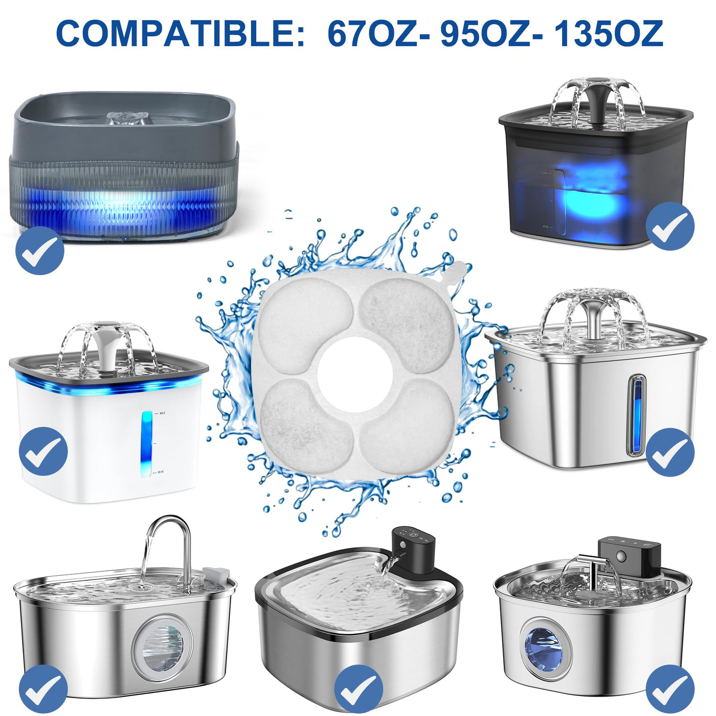 24 Pcs Cat Water Fountain Filters, 12 Pack Filters 12Pack Pre-Filter Sponges Replacement compatible with VEKEN for 95oz/2.8L, 67