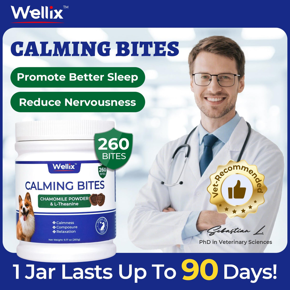 260 Bites Wellix Calming Chews for Dogs - Melatonin, L-Theanine, and Valerian Root - Calming Dog & Puppy, Relaxation, Thunder, Fireworks for Dogs, Dog Supplement