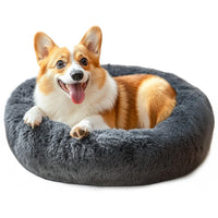 28In Large Dog Bed, Medium Size Dog And Cats, Calming Donut Bed For Puppy And Kitten, Washable Round Fluffy Pet Bed (Dark Grey)