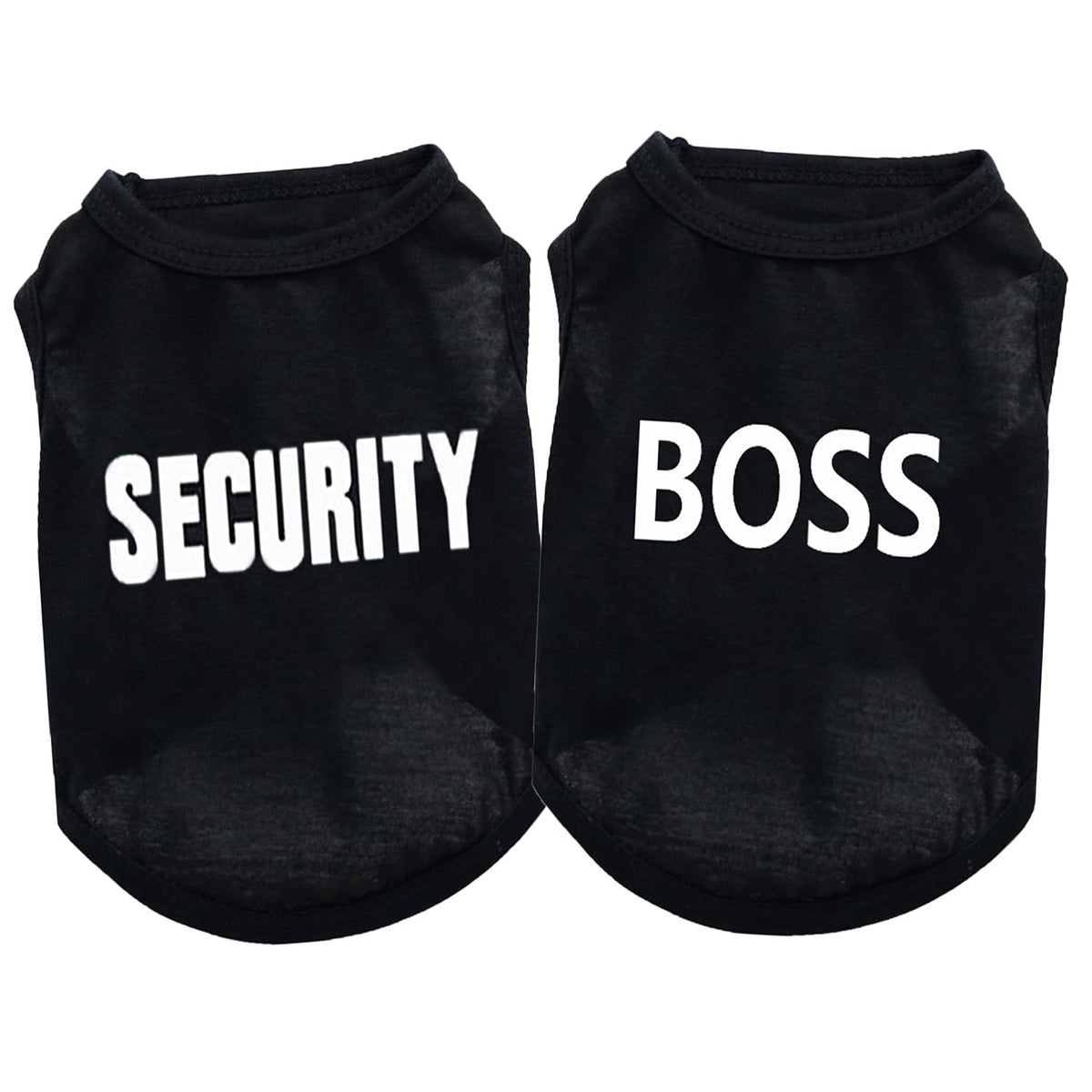 2Pack Dog Security Costume Cotton Dog Shirt For Small Dog Boy Pet Clothes Boss/Security Puppy Black Vest T-Shirts Cat Top Tee Breathable Stretchy