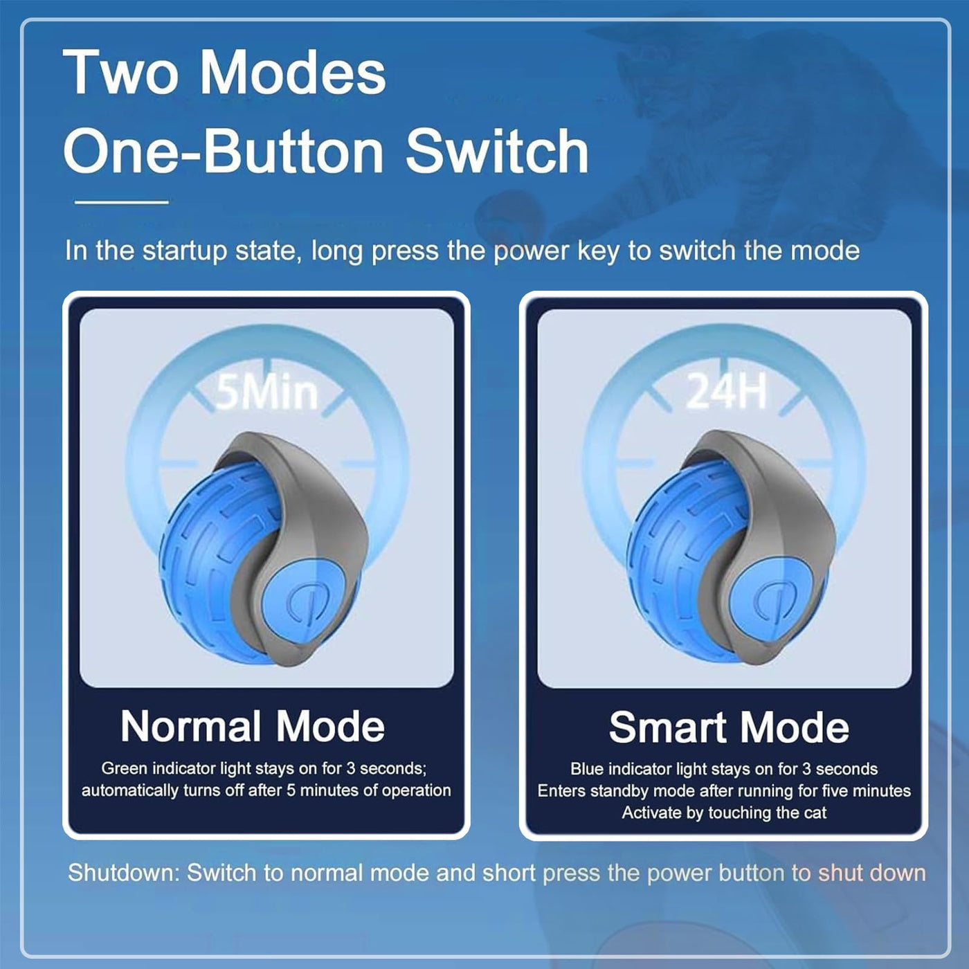How To Work ? 1.Long Press To Turn On/Off 2.Click To Switch Modes A. Normal Mode (The Green Indicator Lights Up For 3S) B. High Speed Mode (Blue Indicator Lights Up For 3S) 3.Red Light Flashing: The Battery Is Too Low And Needs To Be Recharged. 4.The Red Light Goes Out After Charging Is Completed.