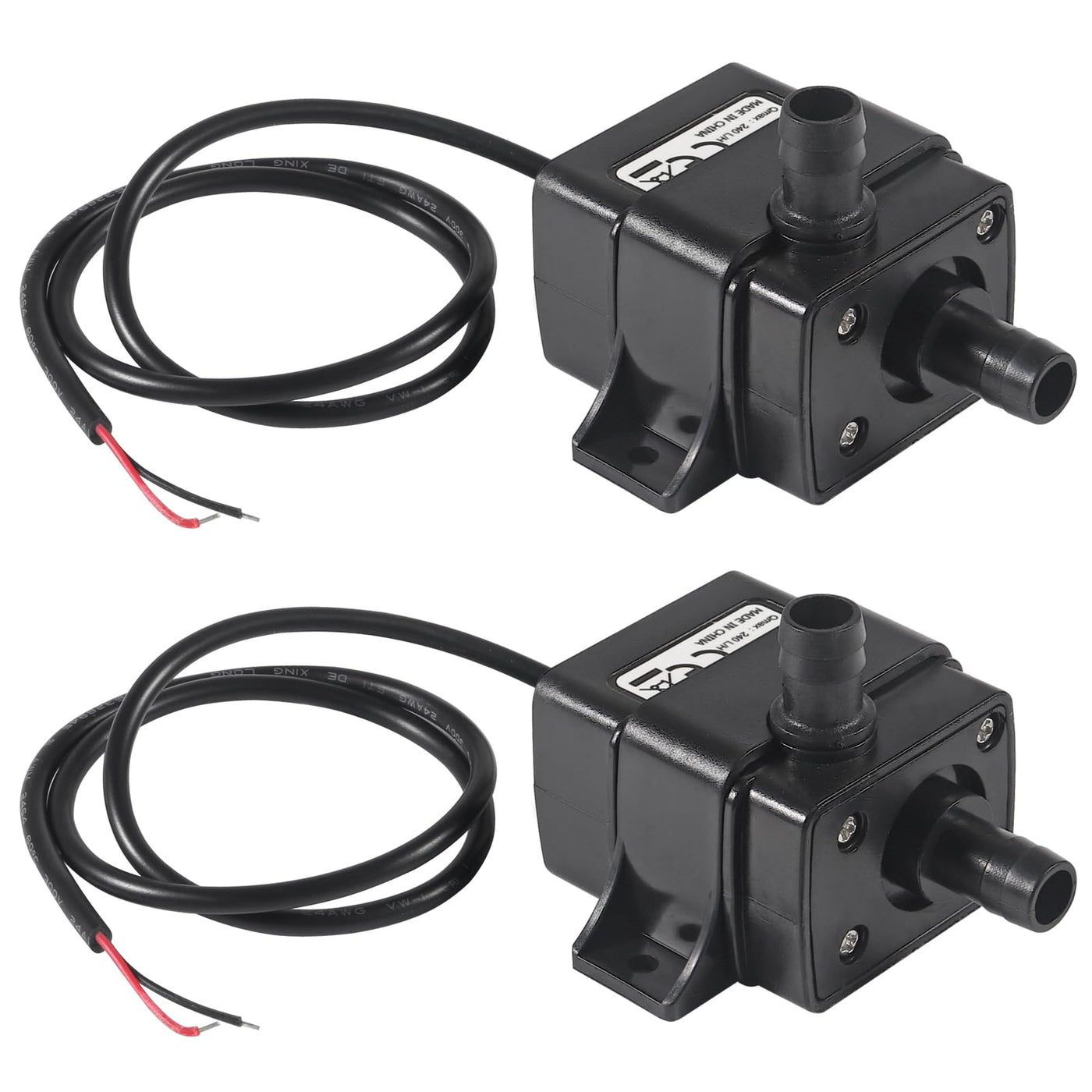 Voltage: DC 12VPower rate:5WMax flow: 240L/HInstruction:Connect the red power cord to + electrode,The black one to the - ;Note:If the pump water output is small,repeatedly switch the power several times to eliminate the air inside the pump impeller.Do not continuously no-load running under water shortage.Package include:2 x Water Pump(No plug included.)