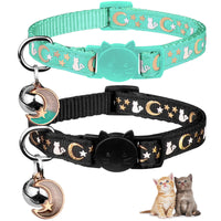2Pcs Breakaway Cat Collars With Bell Cute Kitty Glow In The Dark Adjustable Kitten Collars 7.9-13.0 Inch(Teal&Black)