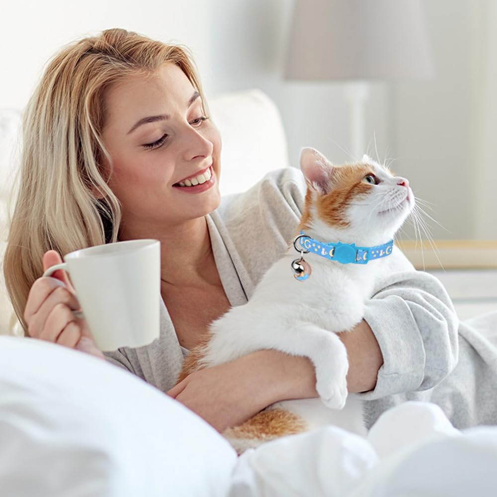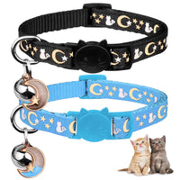 2Pcs Breakaway Cat Collars With Bell Cute Kitty Glow In The Dark Adjustable Kitten Collars With Pendant(Black&Sky Blue)