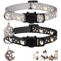 2Pcs Breakaway Cats Collars Cat Collars For Boy & Girl Cats Adjustable Kitten Collars With Bell,Black+Gray