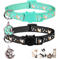 2Pcs Breakaway Cats Collars Cat Collars For Boy & Girl Cats Adjustable Kitten Collars With Bell,Black+Teal,8''-13.1''