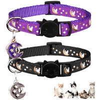 2Pcs Breakaway Cats Collars Cat Collars For Boy & Girl Cats Adjustable Kitten Collars With Bell,Purple+Black,8'-13.1'